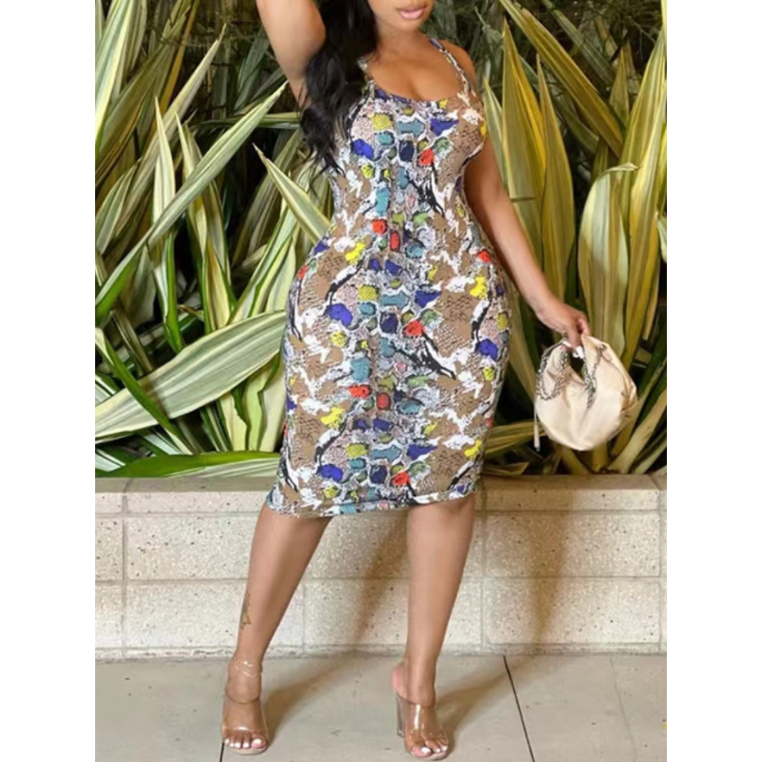 LW SXY Metal Ring Decor Backless Sequined Bodycon Dress