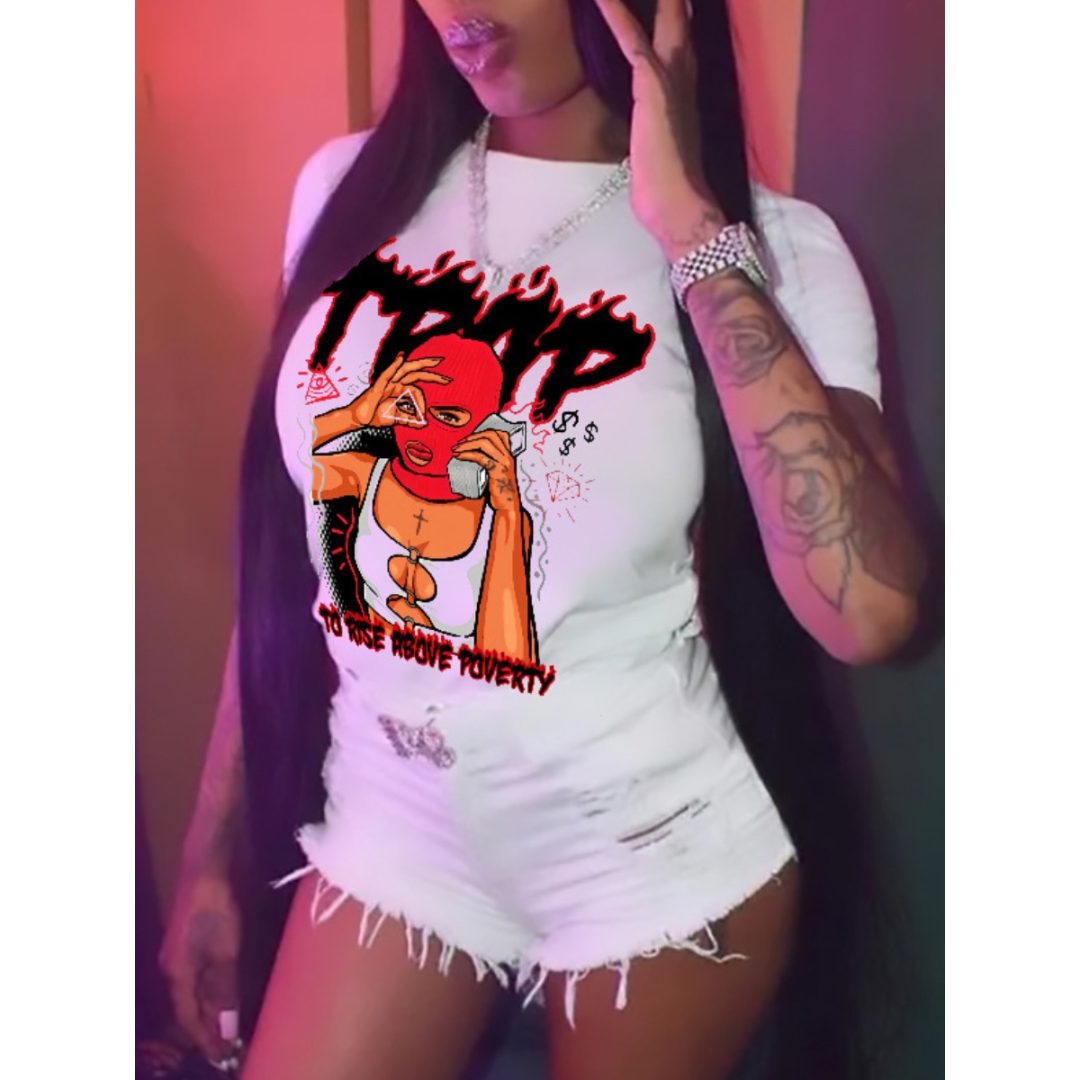 LW Plus Size Camo Letter Print Tassel Design Shorts Set