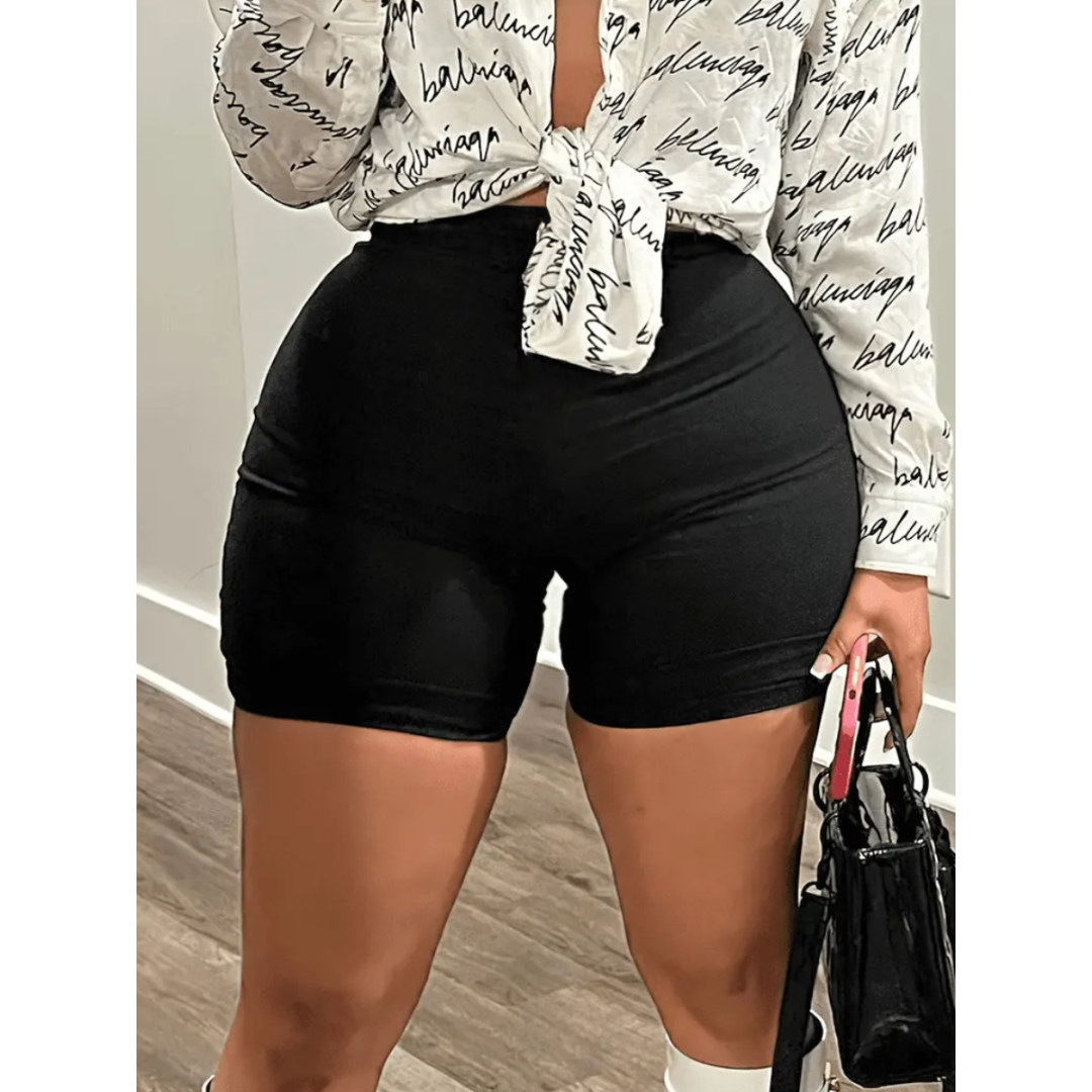 LW BASICS Plus Size Mid Waist Skinny Stretchy Shorts