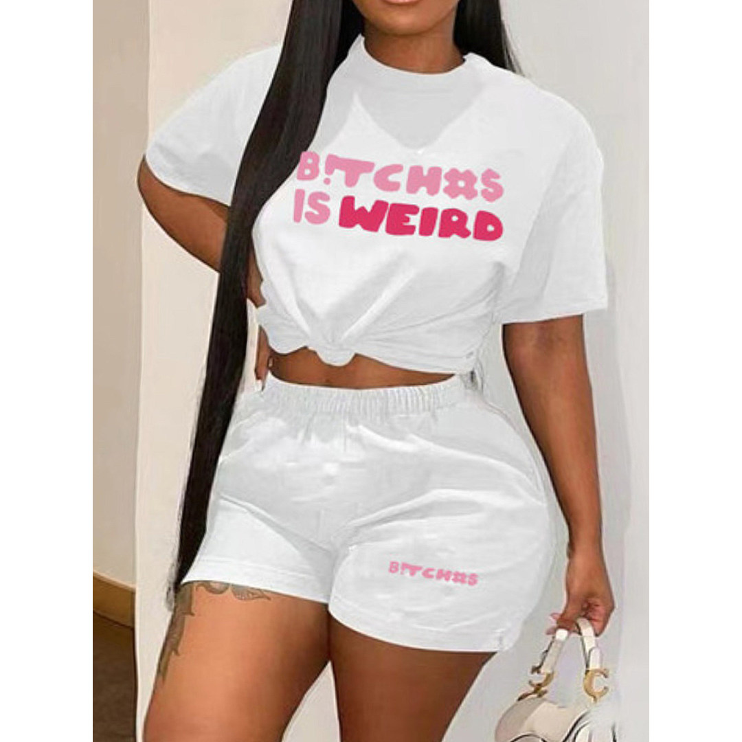 LW Plus Size Letter Print Regular Fit Shorts Set