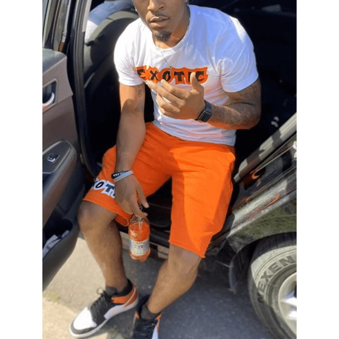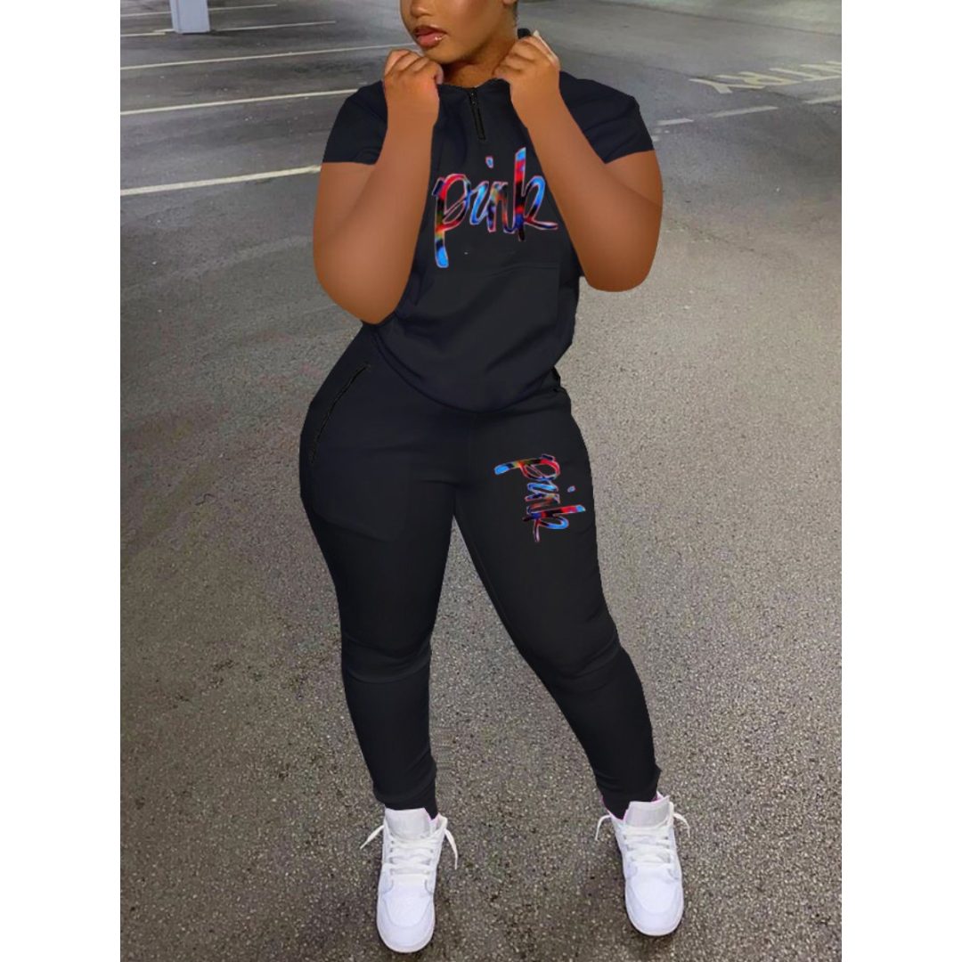 LW Plus Size Letter Print Tassel Design Split Shorts Set