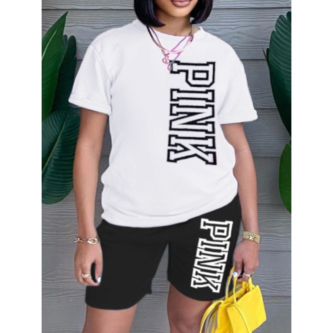 LW BASICS Plus Size Round Neck Skinny Stretchy Shorts Set