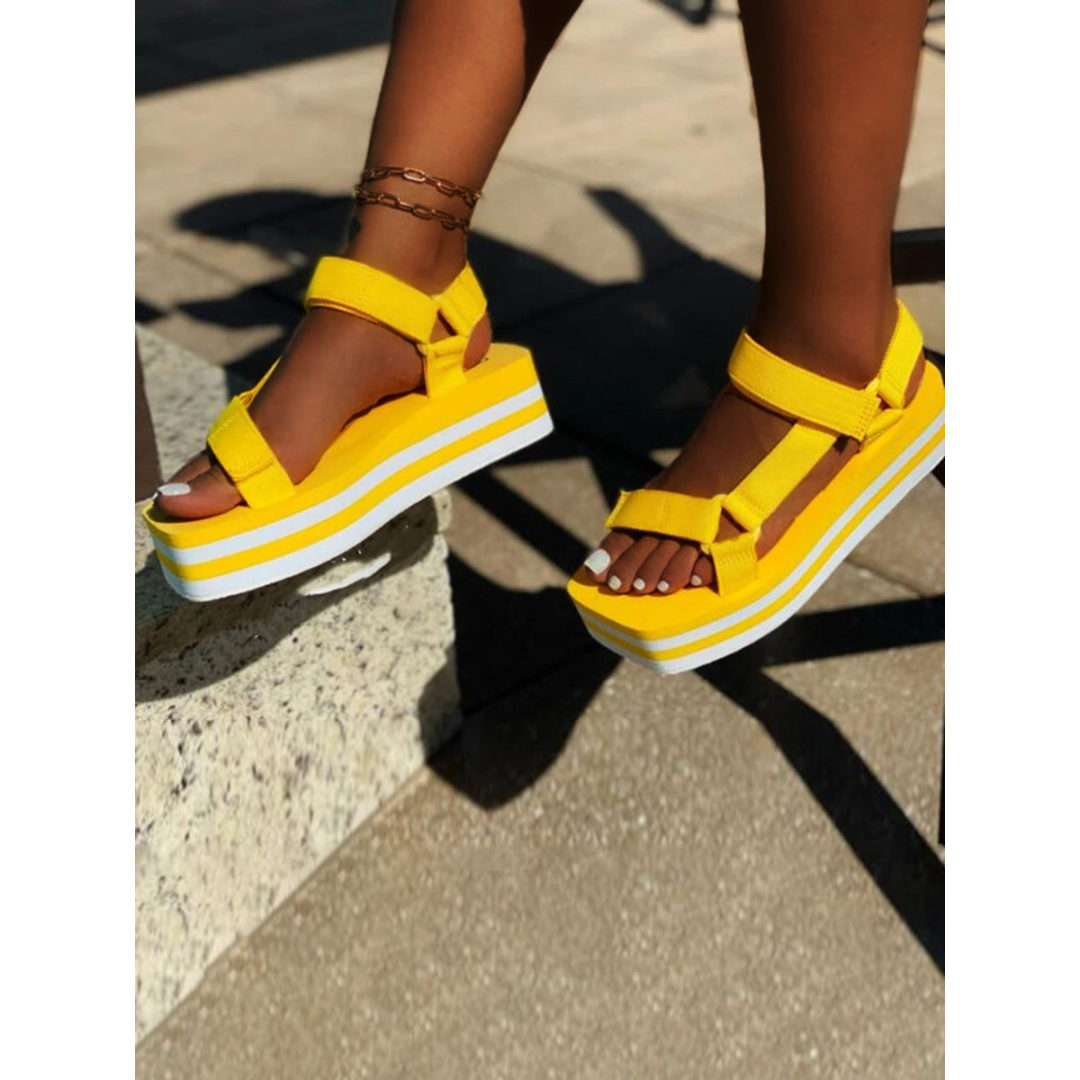 LW Casual Striped Bandage Design Yellow Platform Sandals