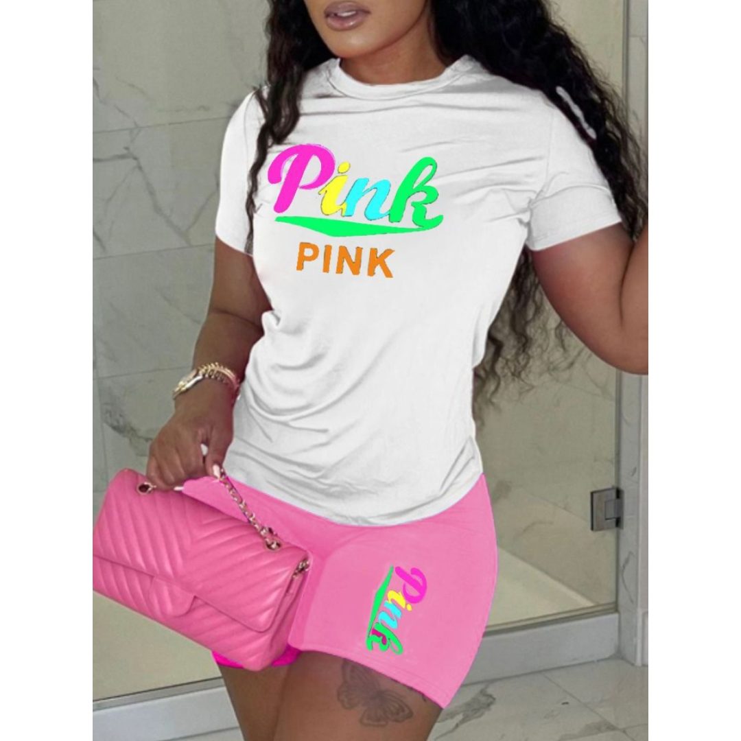 LW Crop Top Crown Lip Letter Print Shorts Set