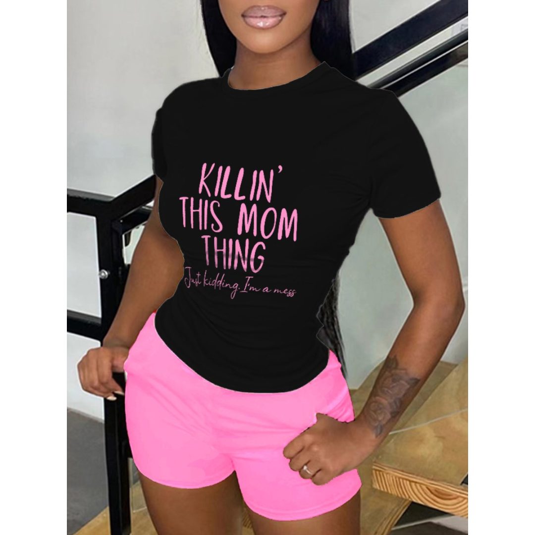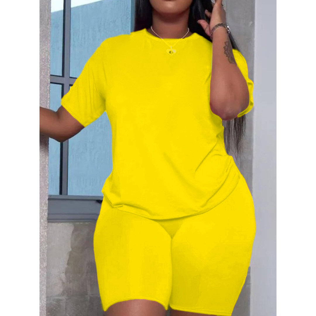 LW BASICS Plus Size Round Neck Skinny Stretchy Shorts Set