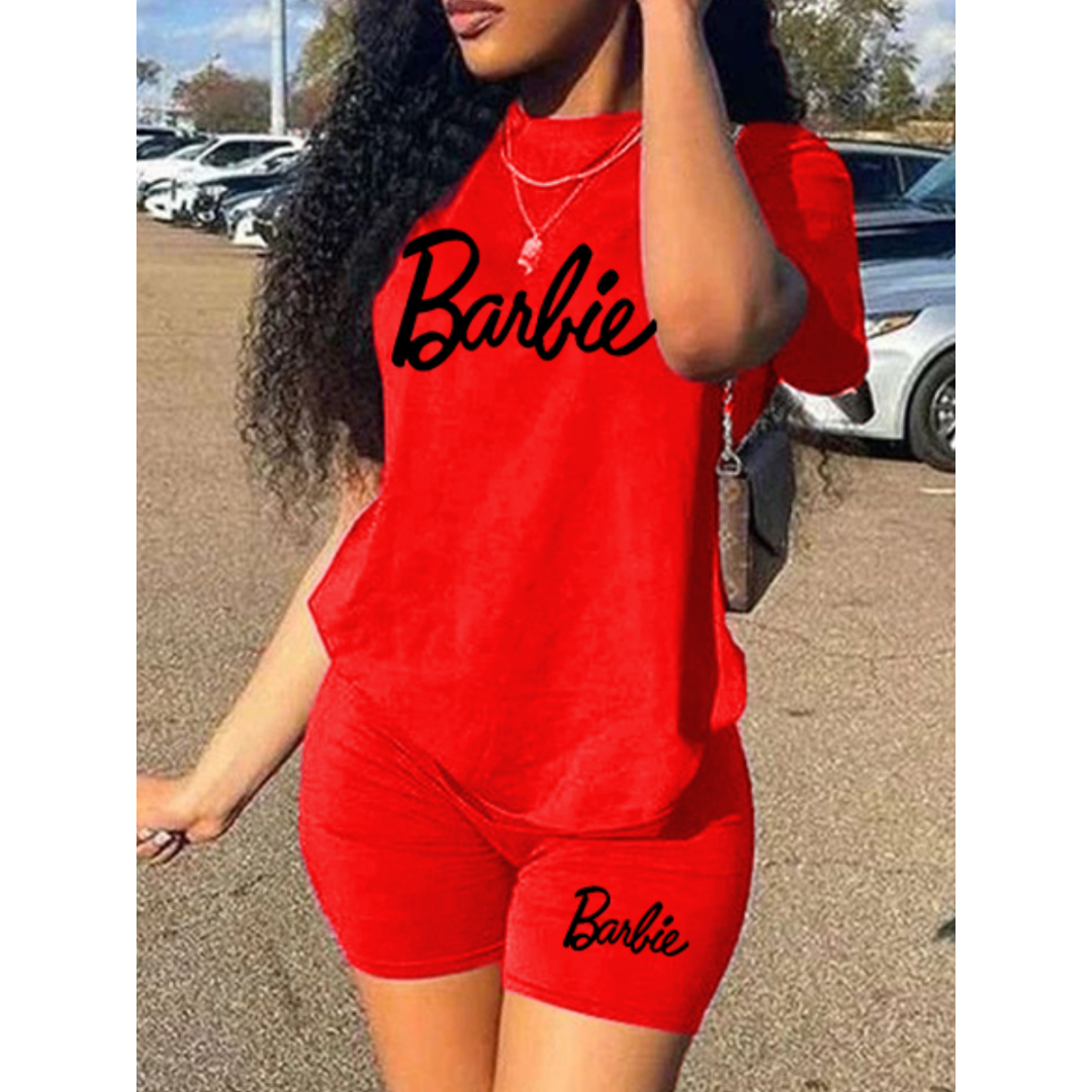 LW Plus Size Crop Top Cartoon Letter Print Shorts Set