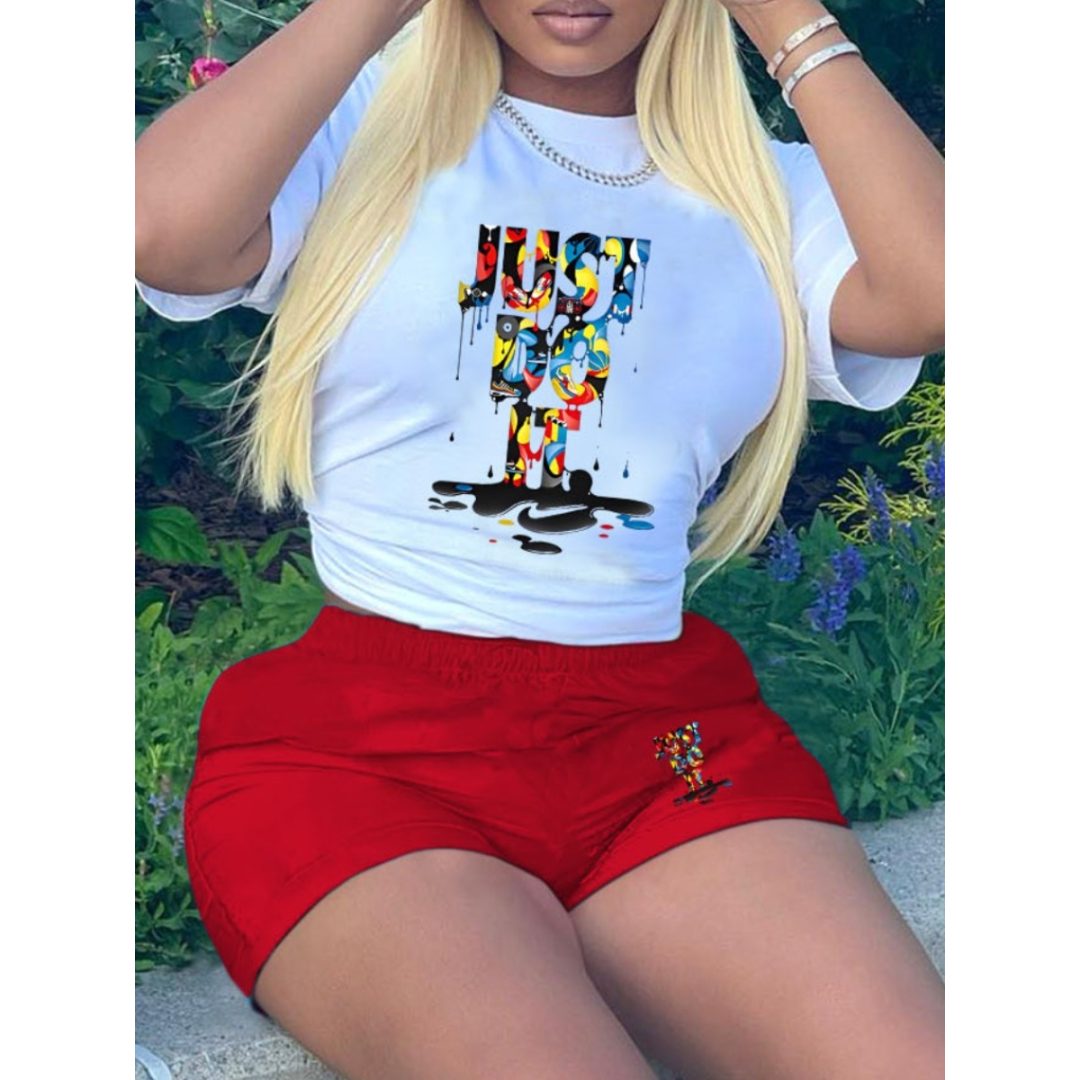 LW Crop Top Geometric Print Bandage Design Shorts Set