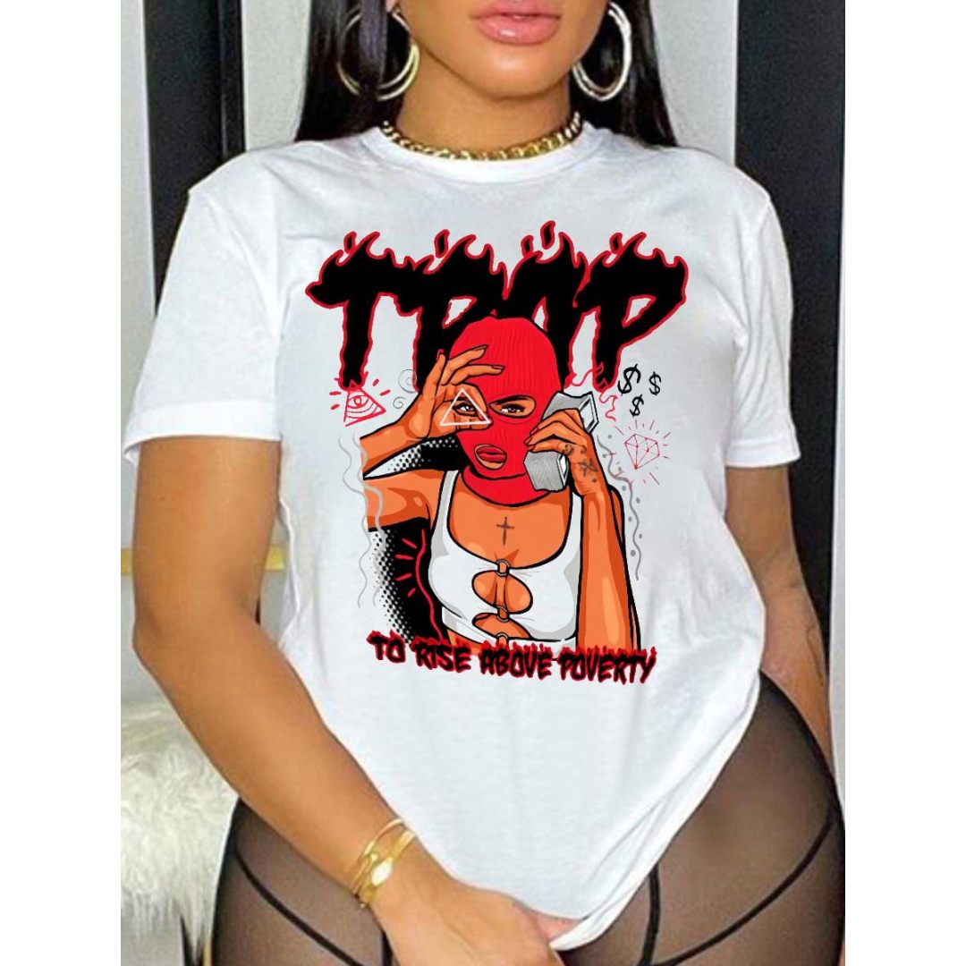 LW Plus Size Masked Face Figure Letter Print T-shirt