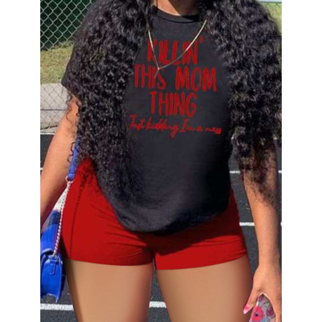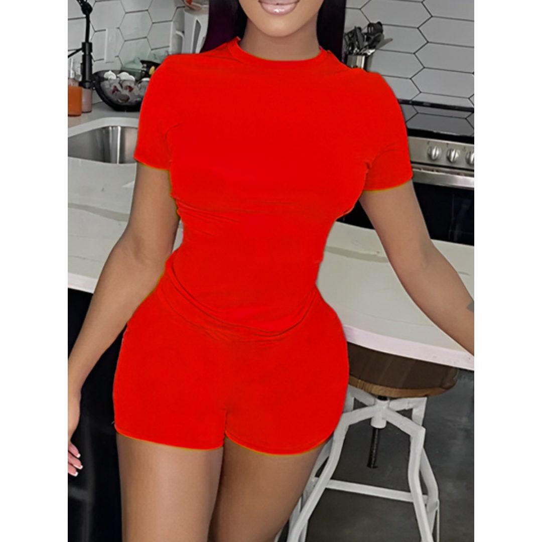 LW BASICS Plus Size Round Neck Skinny Booty Shorts Set