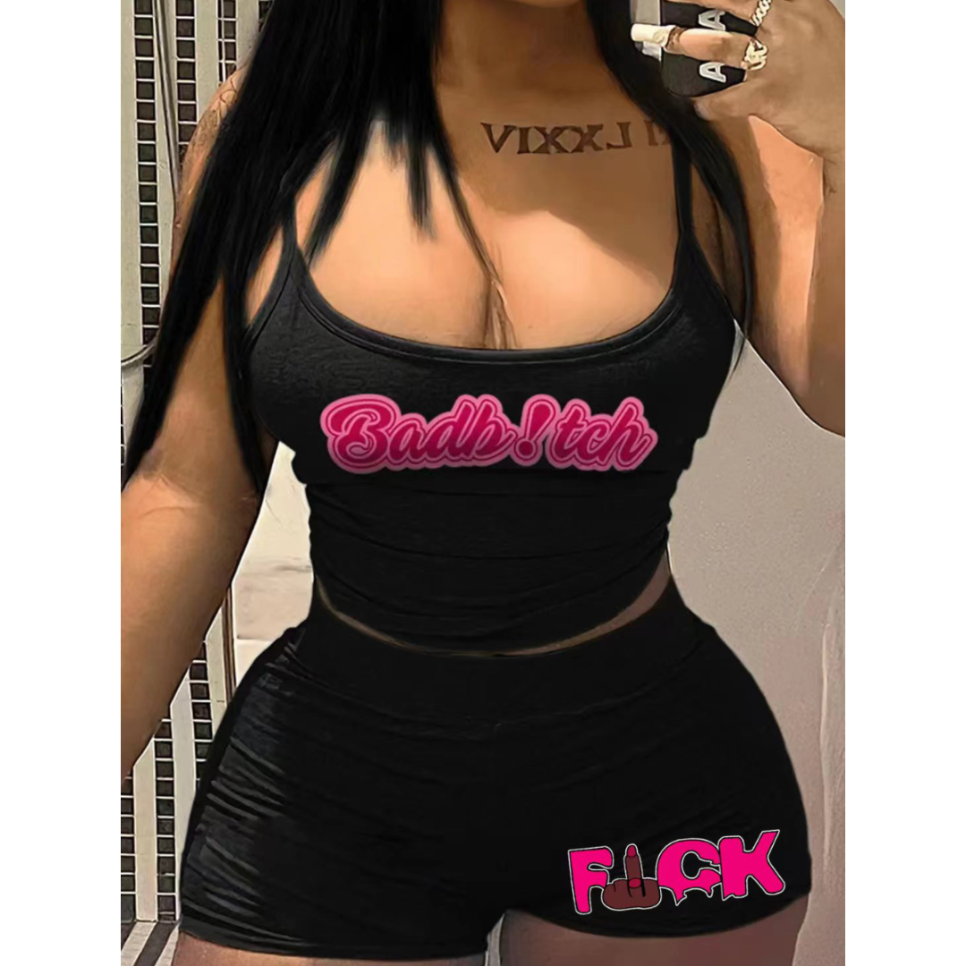 LW Plus Size Camo Nope Not Today Letter Print Shorts Set