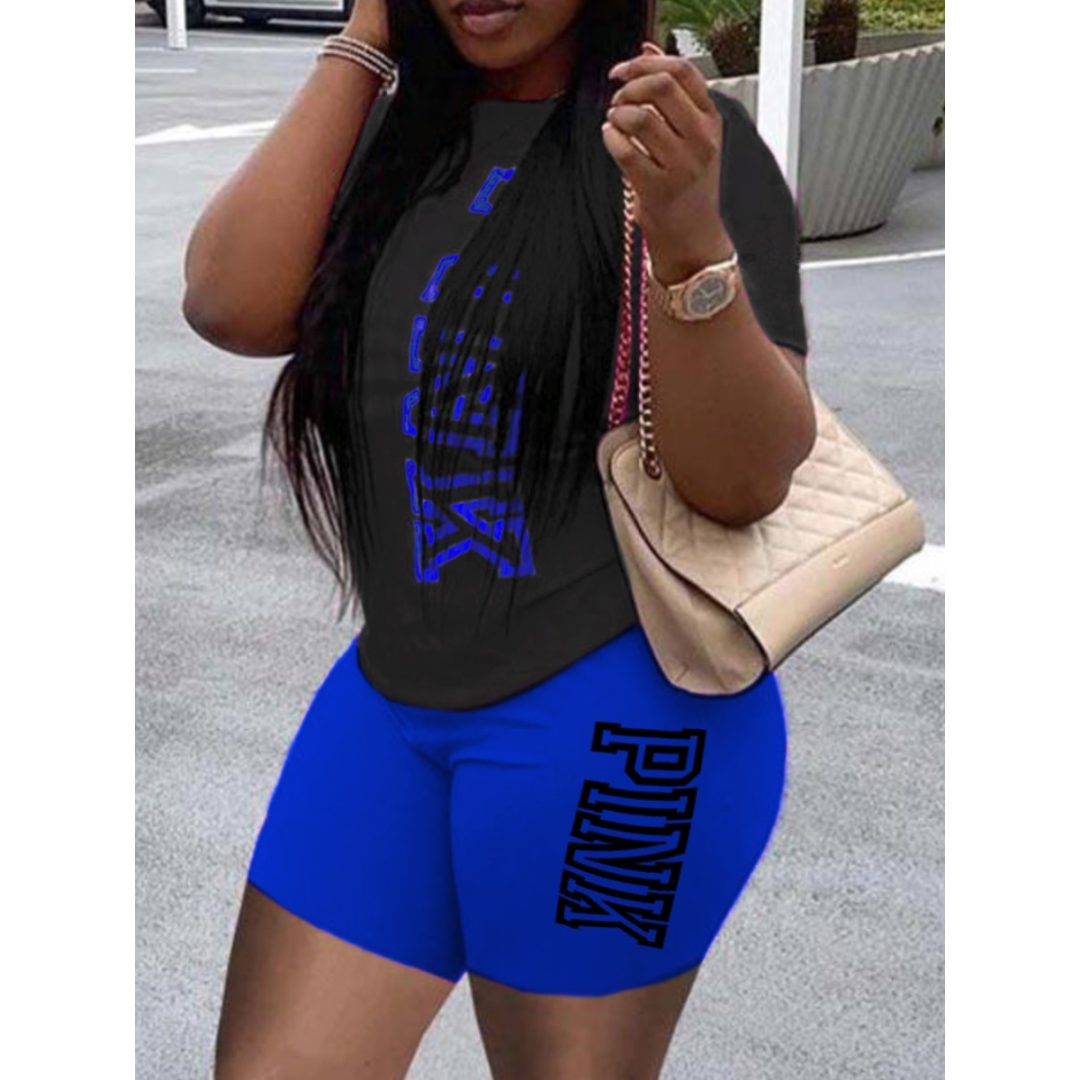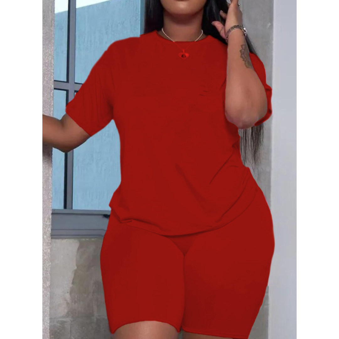 LW BASICS Plus Size Round Neck Skinny Stretchy Shorts Set