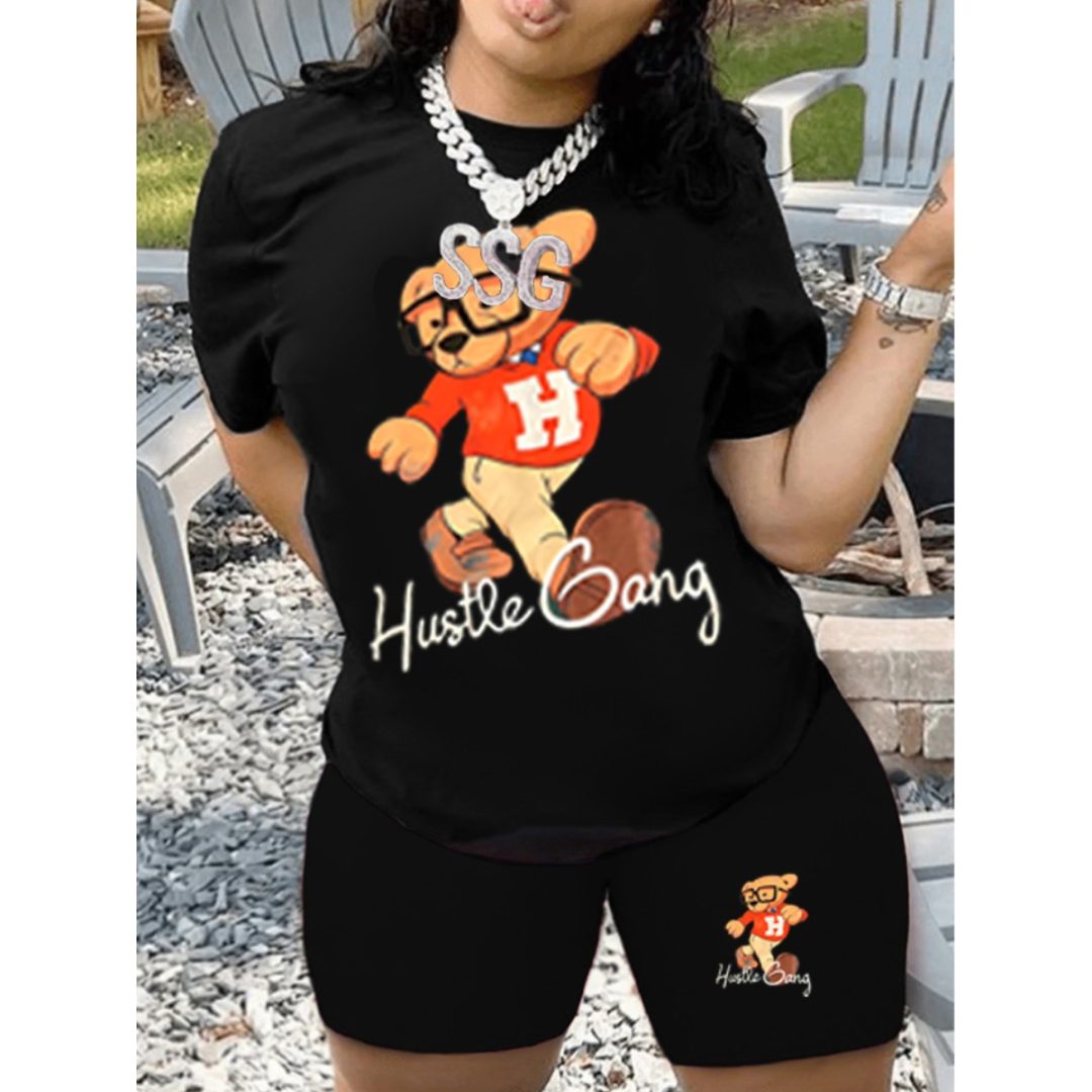 LW Plus Size Bear Cartoon Letter Print Shorts Set