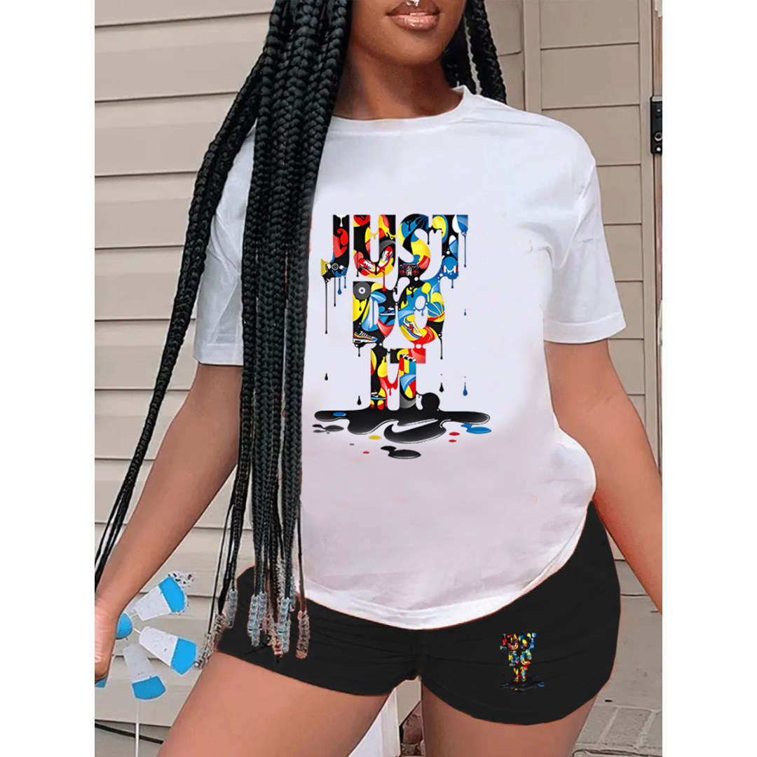 LW Splash Ink Just Do It Letter Print Shorts Set