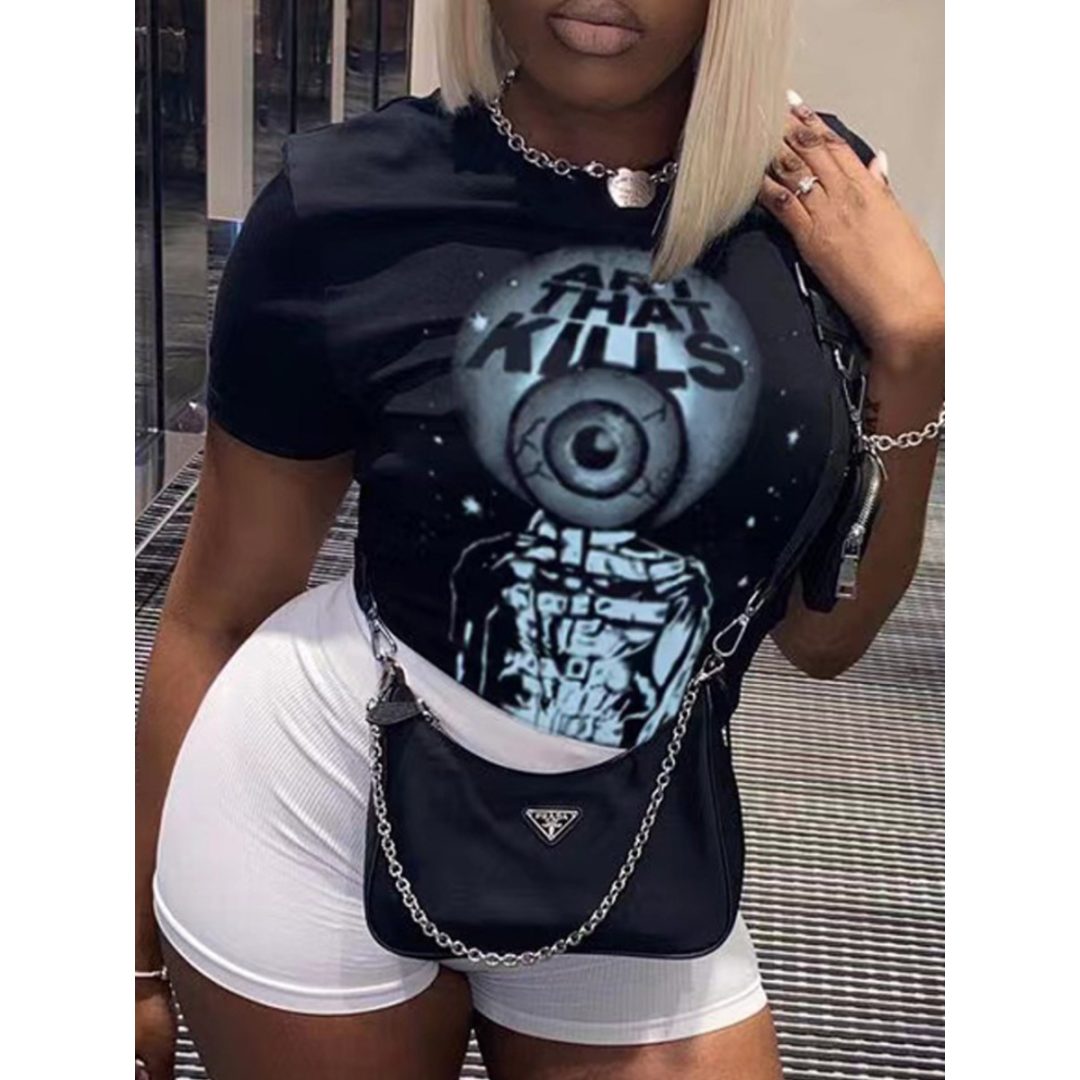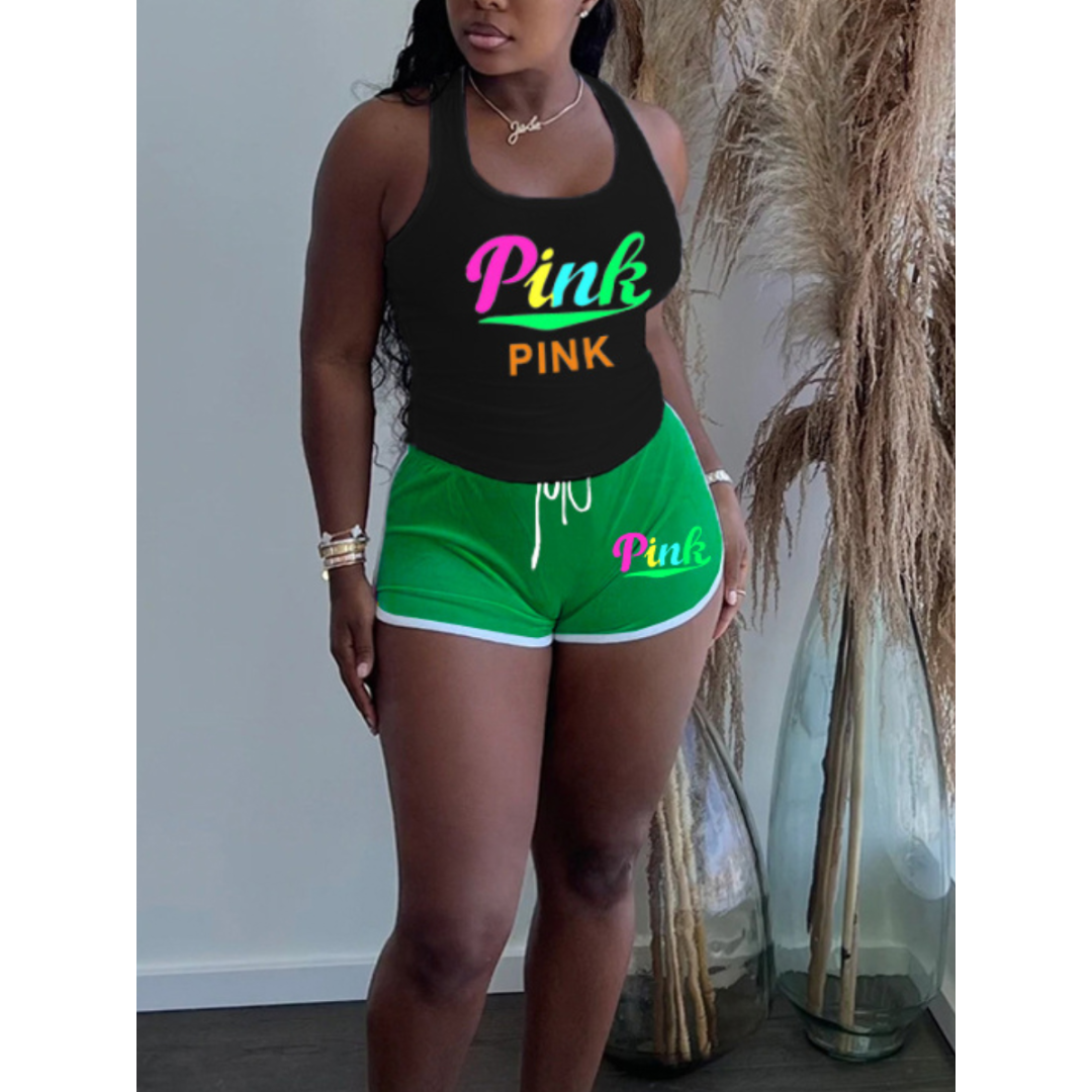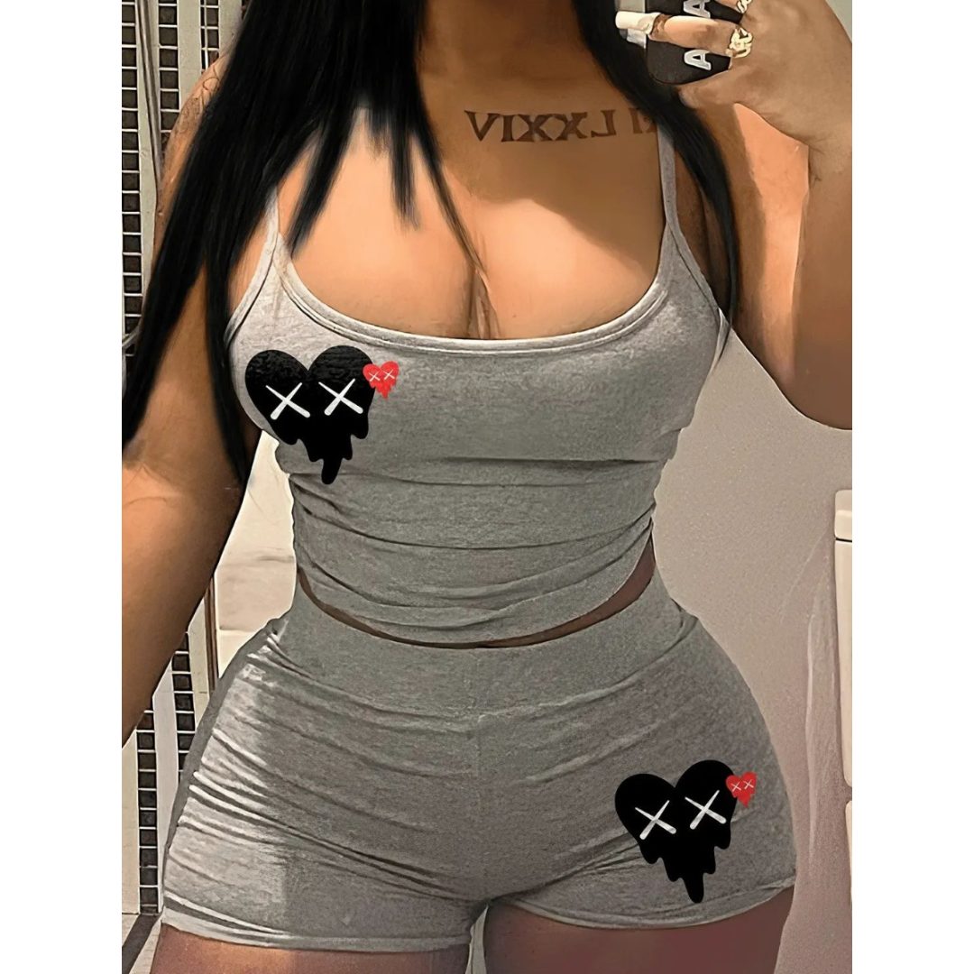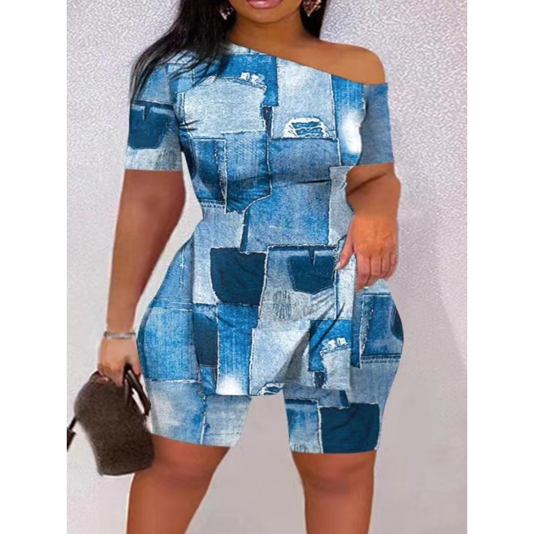 LW Plus Size One Shoulder Mixed Print Side Split Shorts Set