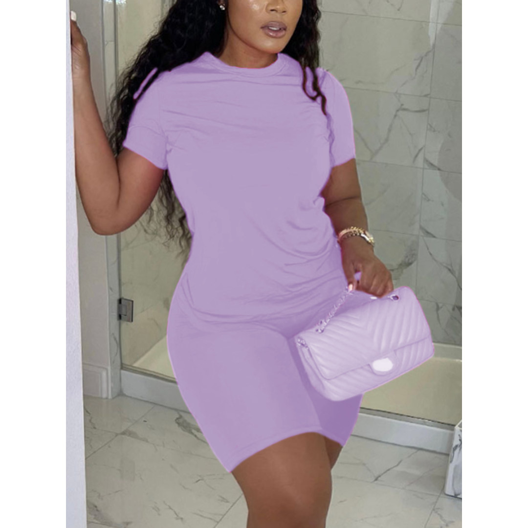 LW BASICS Plus Size Round Neck Skinny Stretchy Shorts Set
