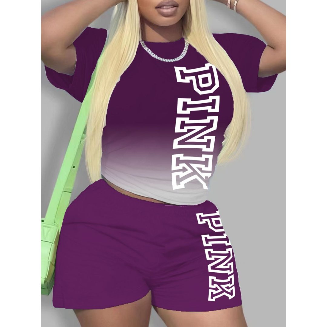 LW Plus Size Splash Ink Just Do It Letter Print Shorts Set