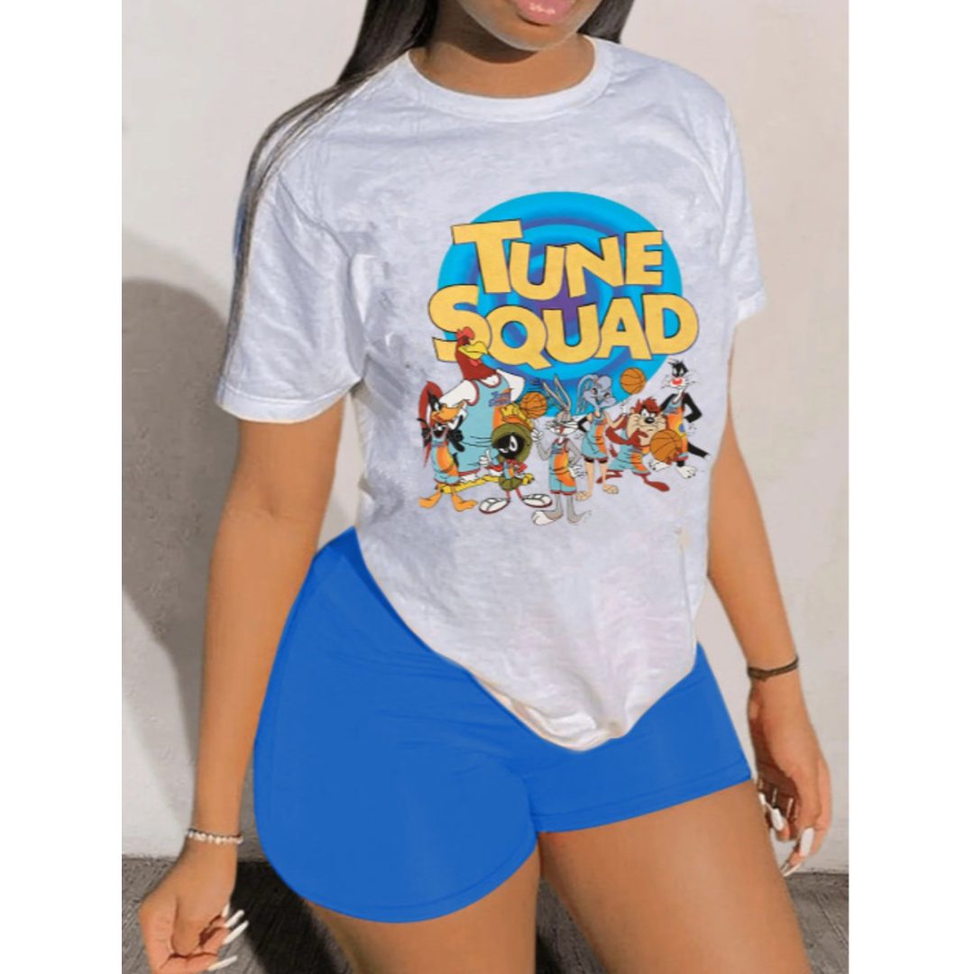 LW Plus Size Cartoon Letter Print Shorts Set