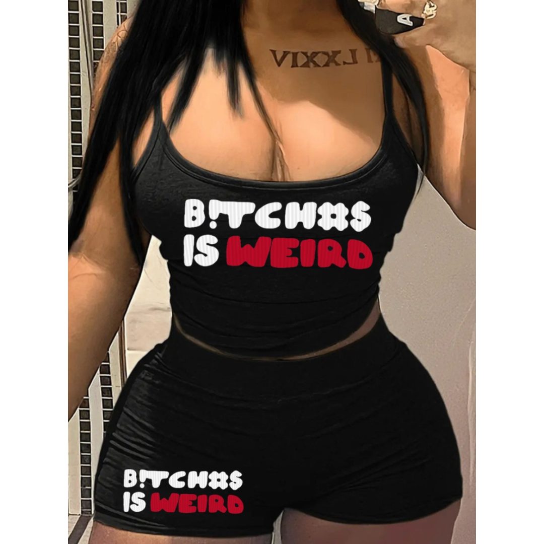 LW Cami Letter Print Shorts Set