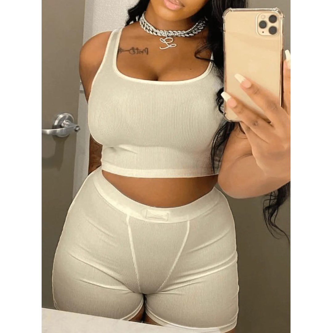 LW BASICS Crop Top Rib Knit Skinny Shorts Set