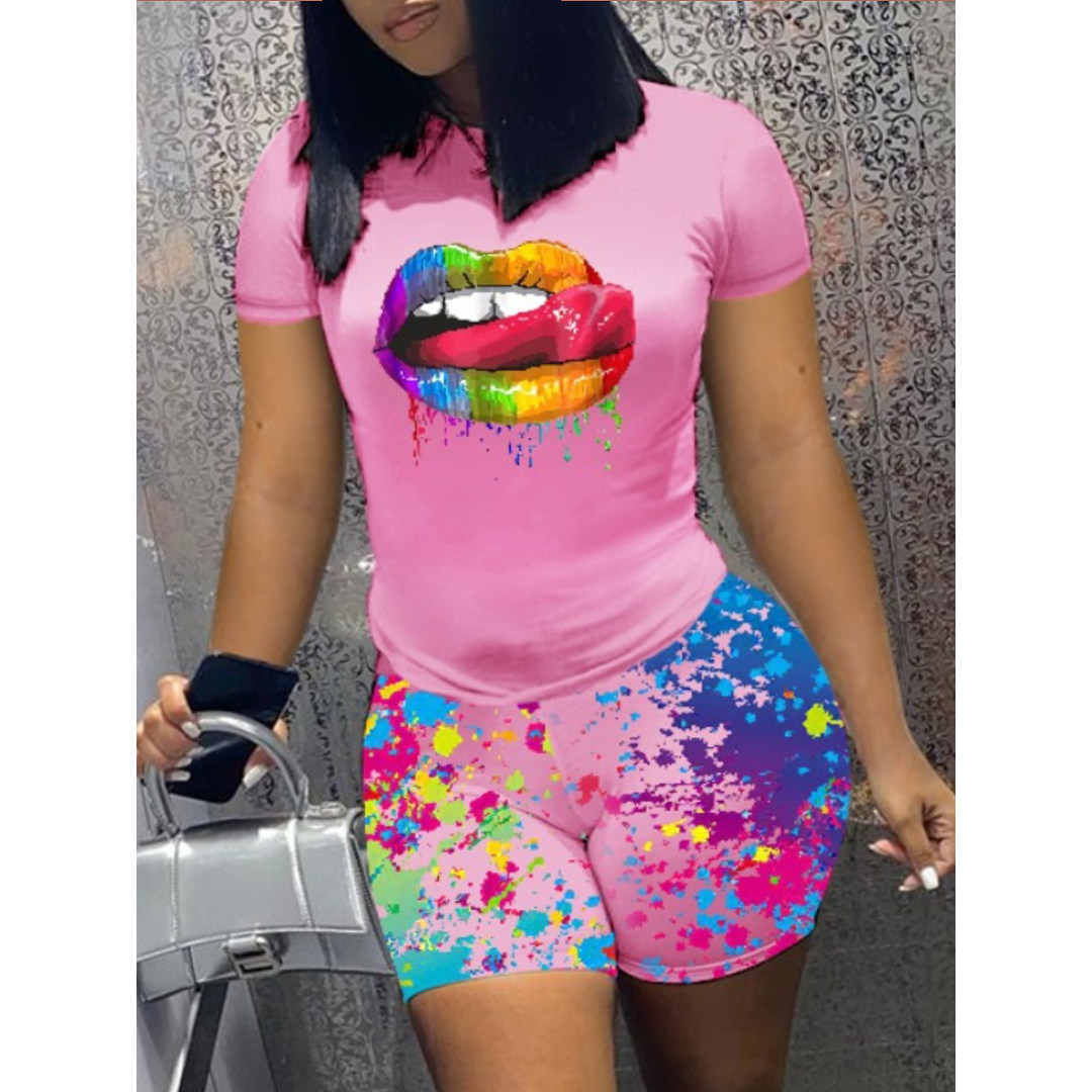 LW Plus Size Splash Ink Lip Print Shorts Set