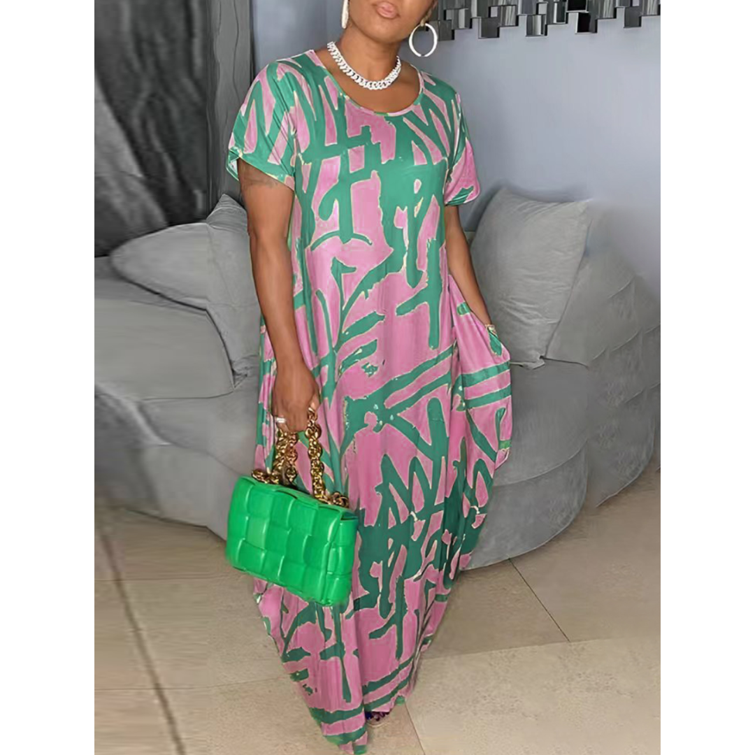 LW Plus Size Graffiti Print Pocket Design Loose Dress