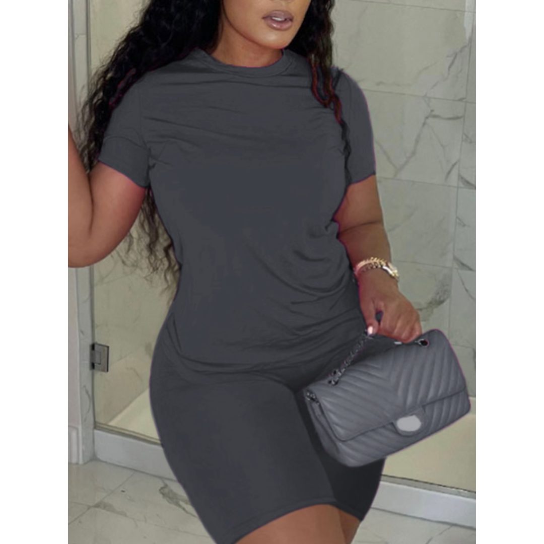 LW BASICS Plus Size Round Neck Regular Fit Shorts Set