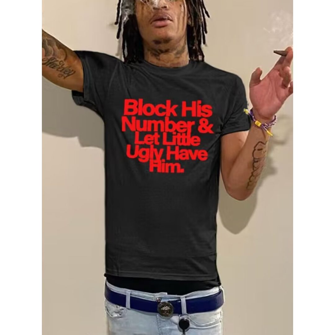 LW Men Block His Number Letter Print T-shirt
