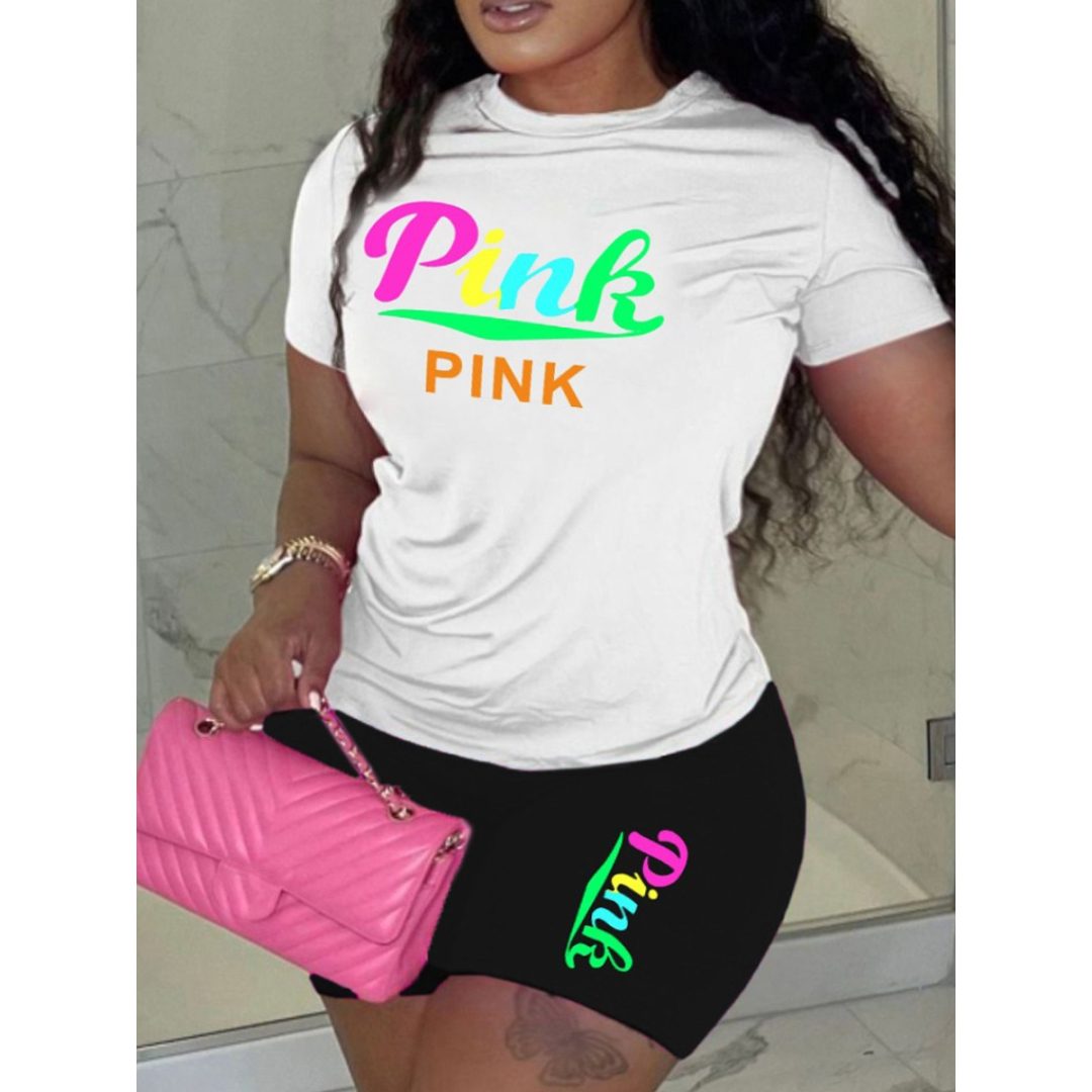 LW Pink Letter Print Shorts Set