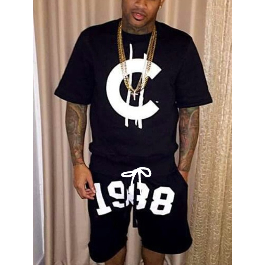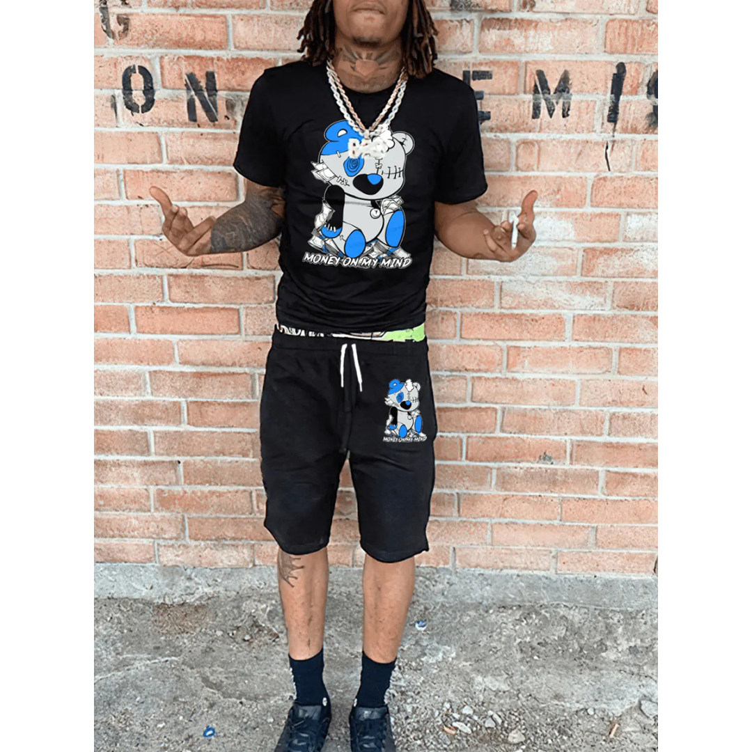 LW Men Cartoon Letter Print Shorts Set