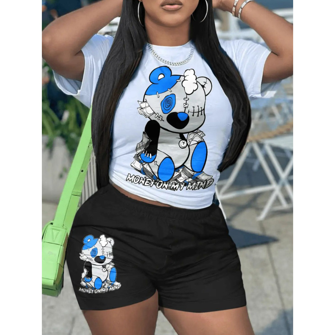 LW Bear Cartoon Letter Print Shorts Set
