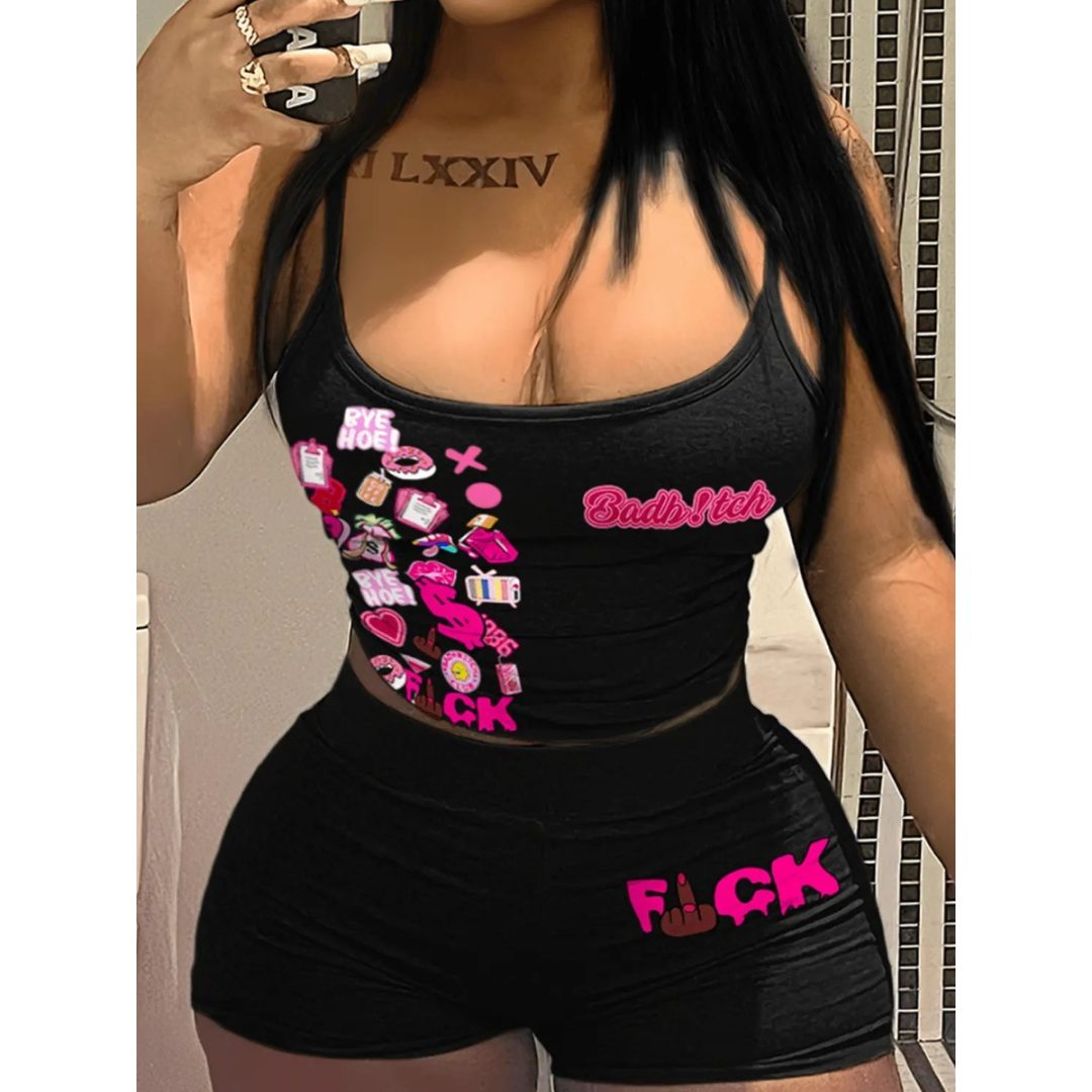 LW Cami Letter Print Shorts Set