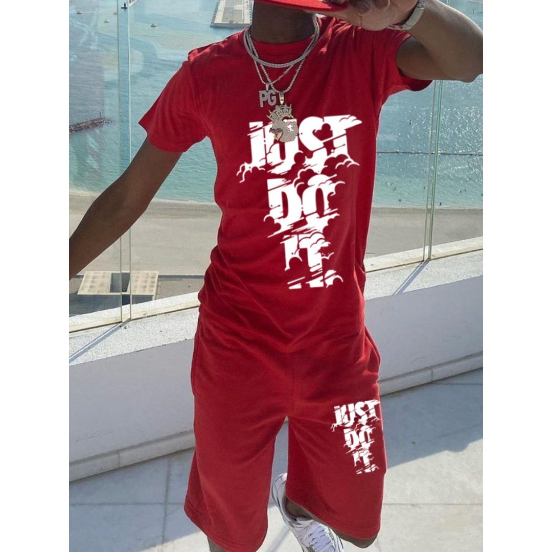 LW Men Just Do It Letter Print Drawstring Shorts Set