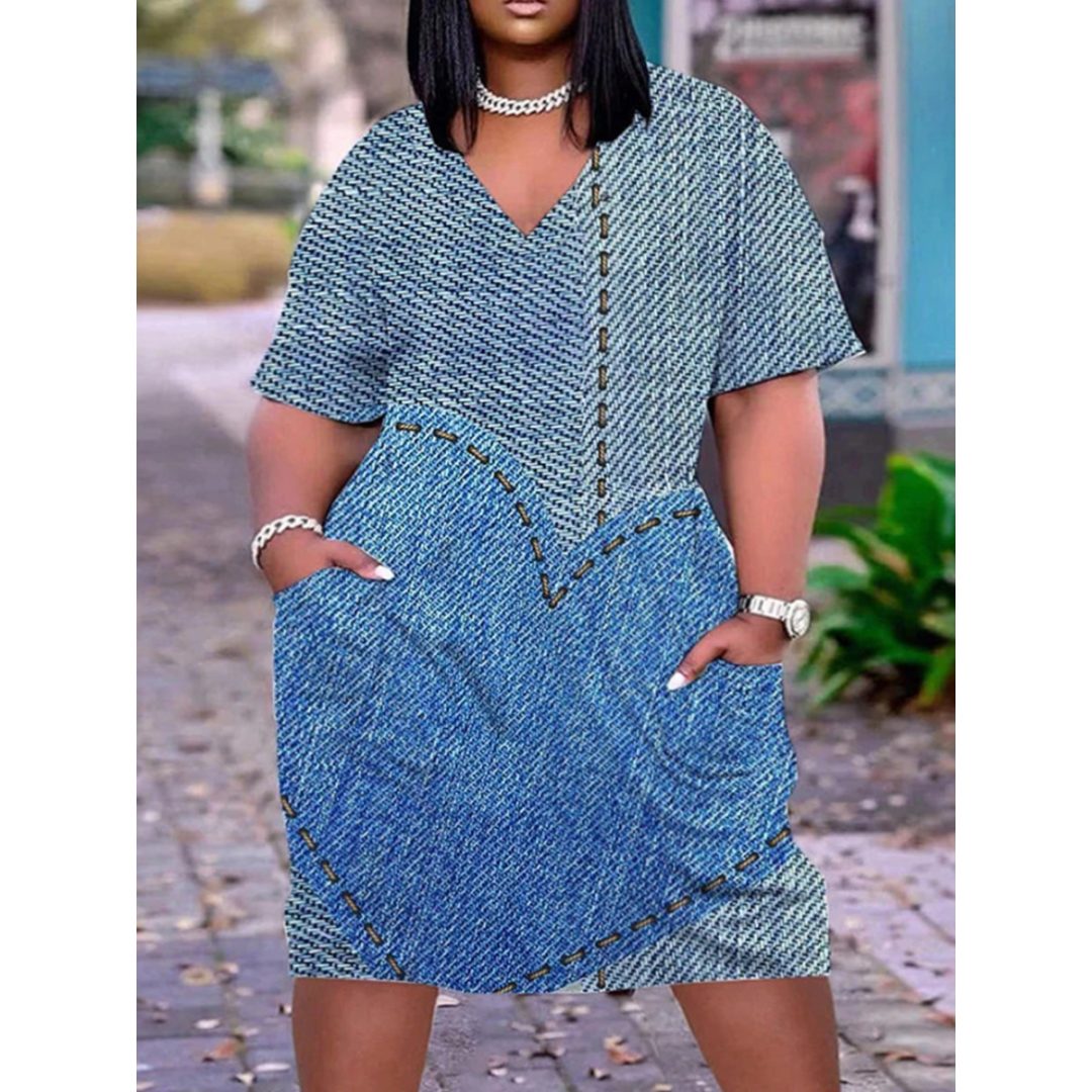 LW Plus Size Imitation Denim Heart Decor Pocket Design Dress