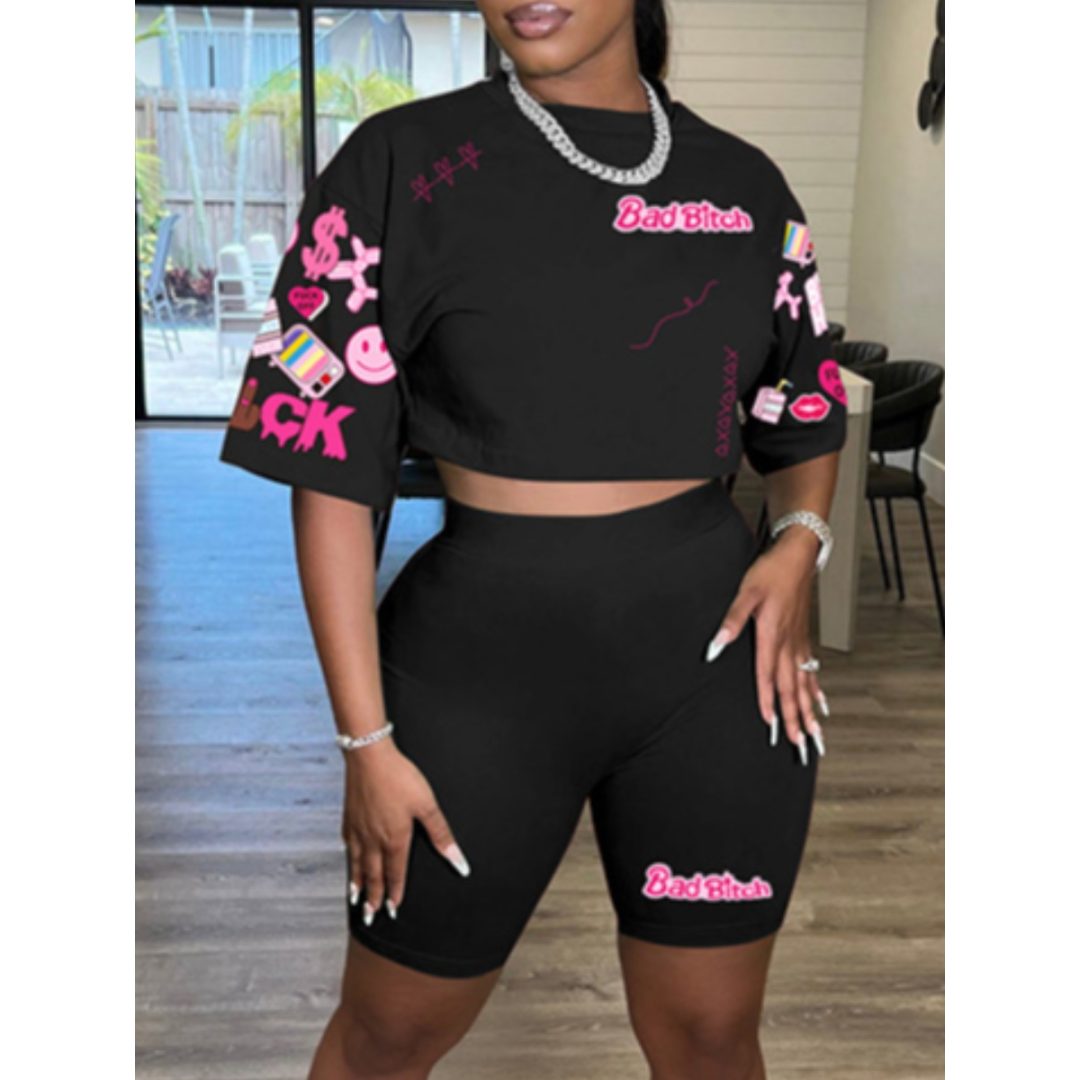 LW Barbie Letter Print Shorts Set