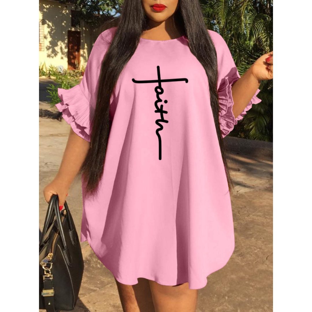 LW Plus Size Faith Letter Print Ruffle Design Loose Dress
