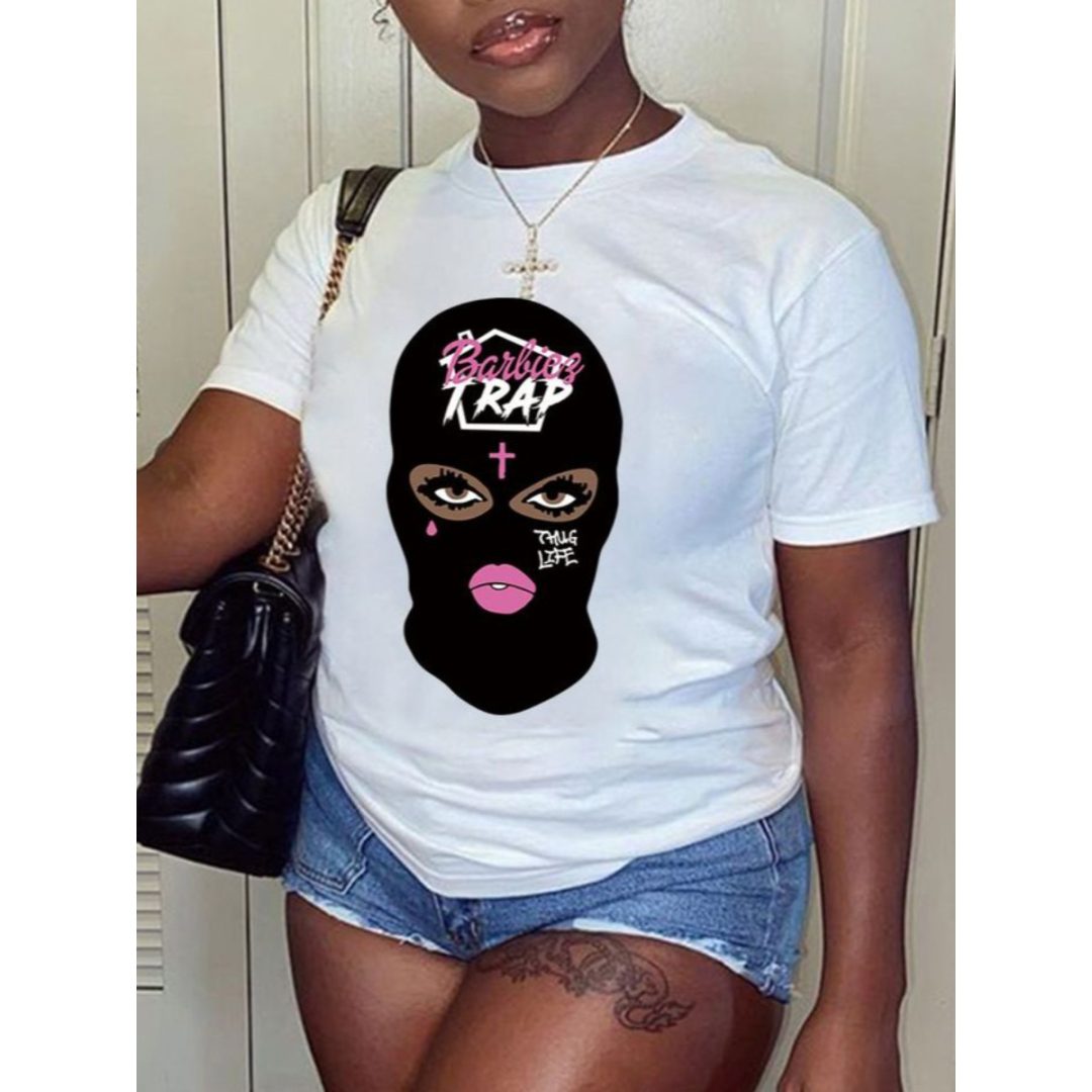 LW Plus Size Masked Face Figure Letter Print T-shirt