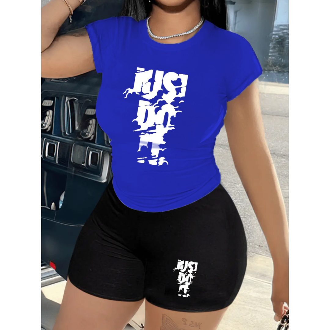 LW BASICS Plus Size Round Neck Skinny Stretchy Shorts Set