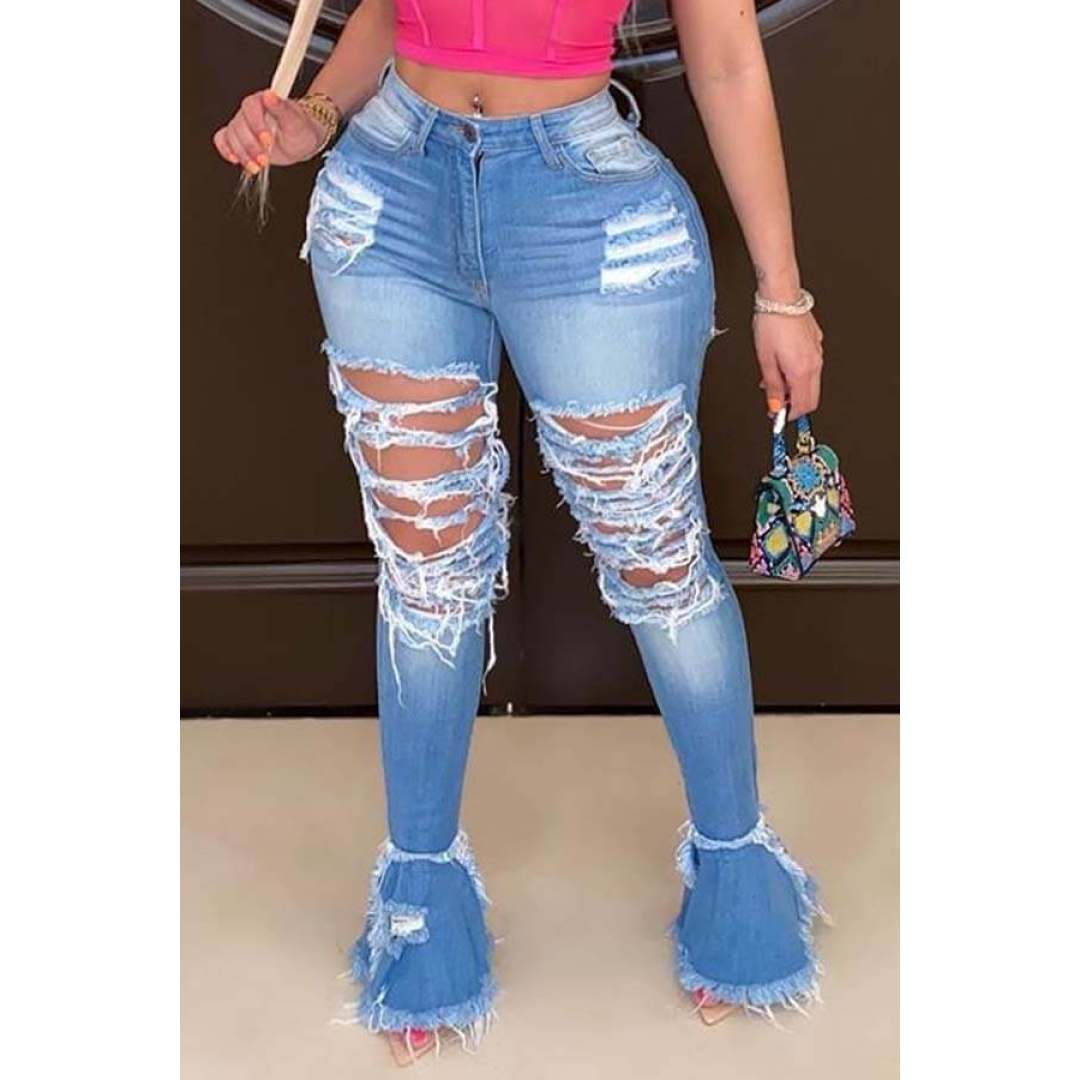 LW Mid Waist Ripped Flared Jeans