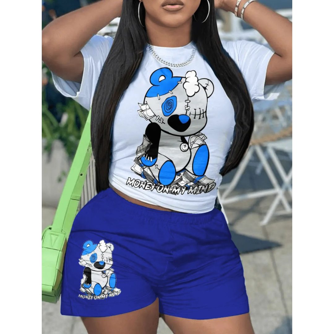 LW Plus Size Bear Cartoon Letter Print Shorts Set