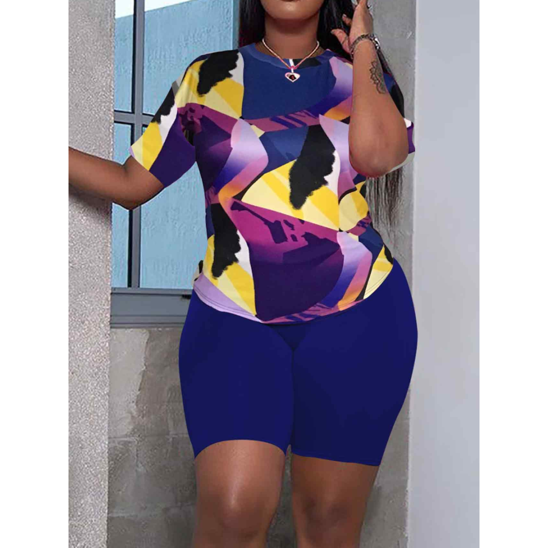LW Plus Size Mixed Print Pocket Design Shorts Set