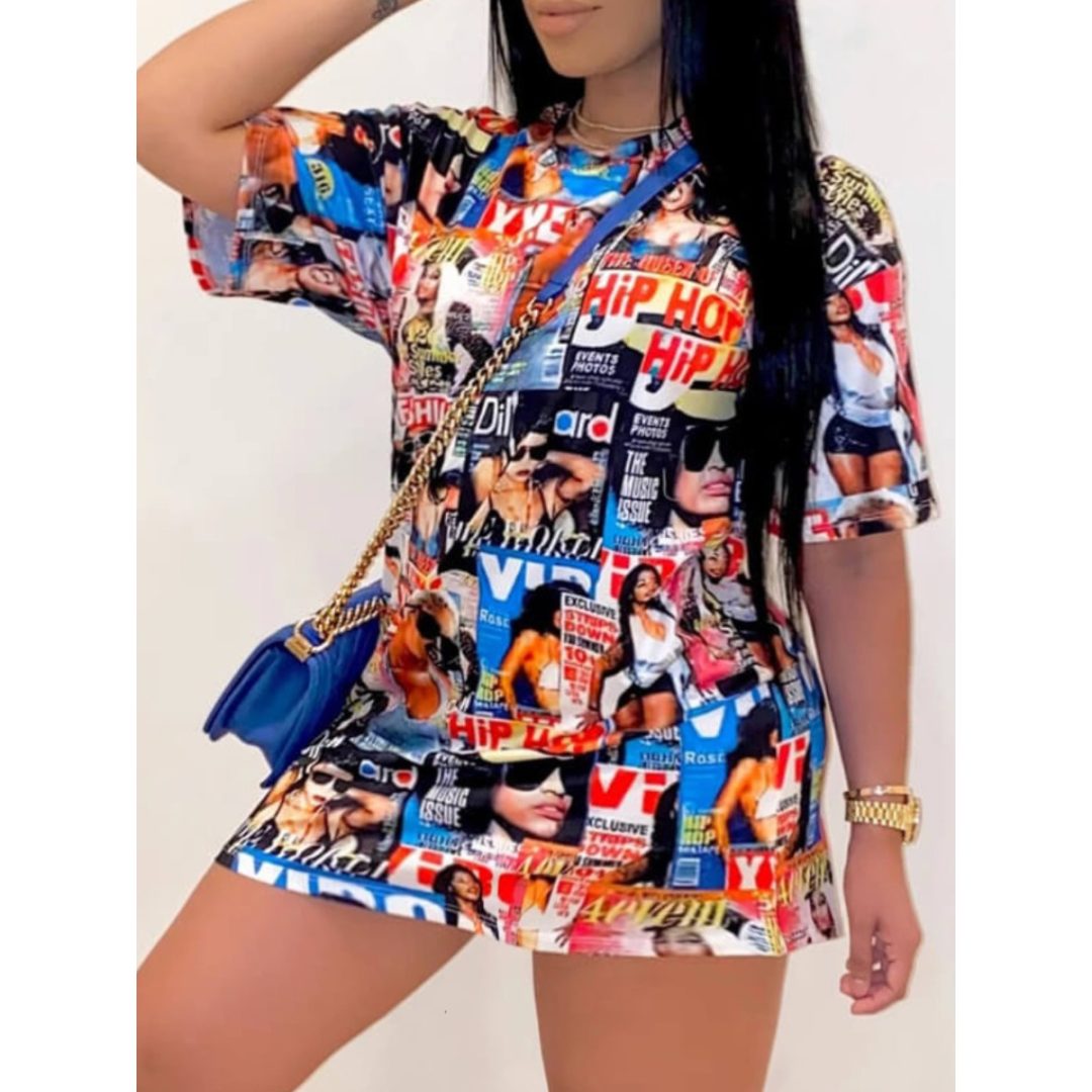LW Cartoon Letter Print Shorts Set