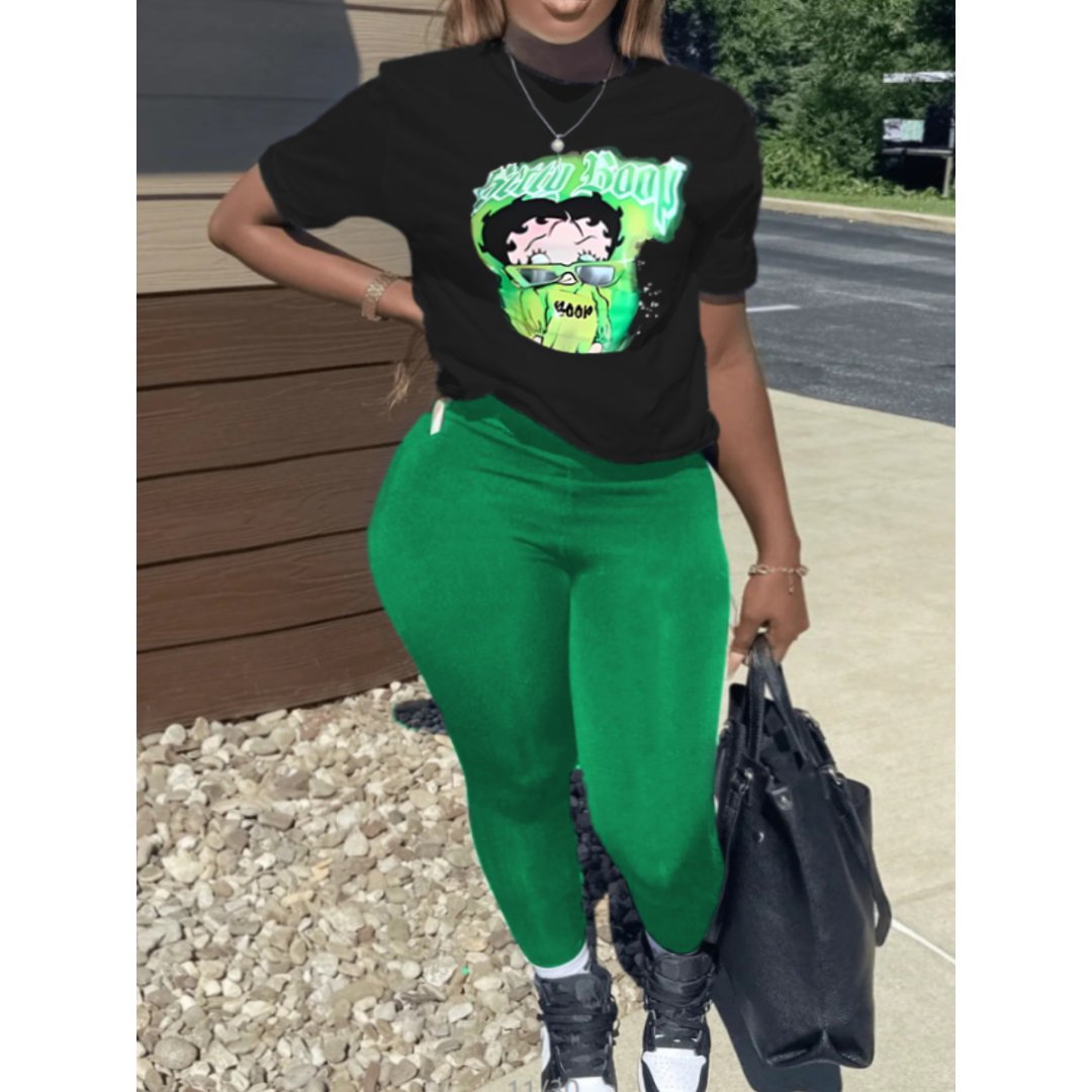 LW Plus Size Cartoon Letter Print Skinny Pants Set