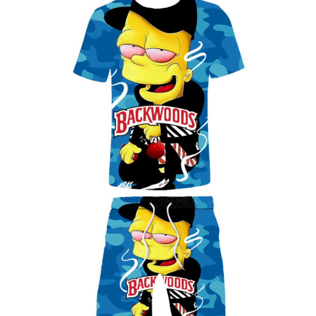 LW Men Camo Cartoon Letter Print Shorts Set