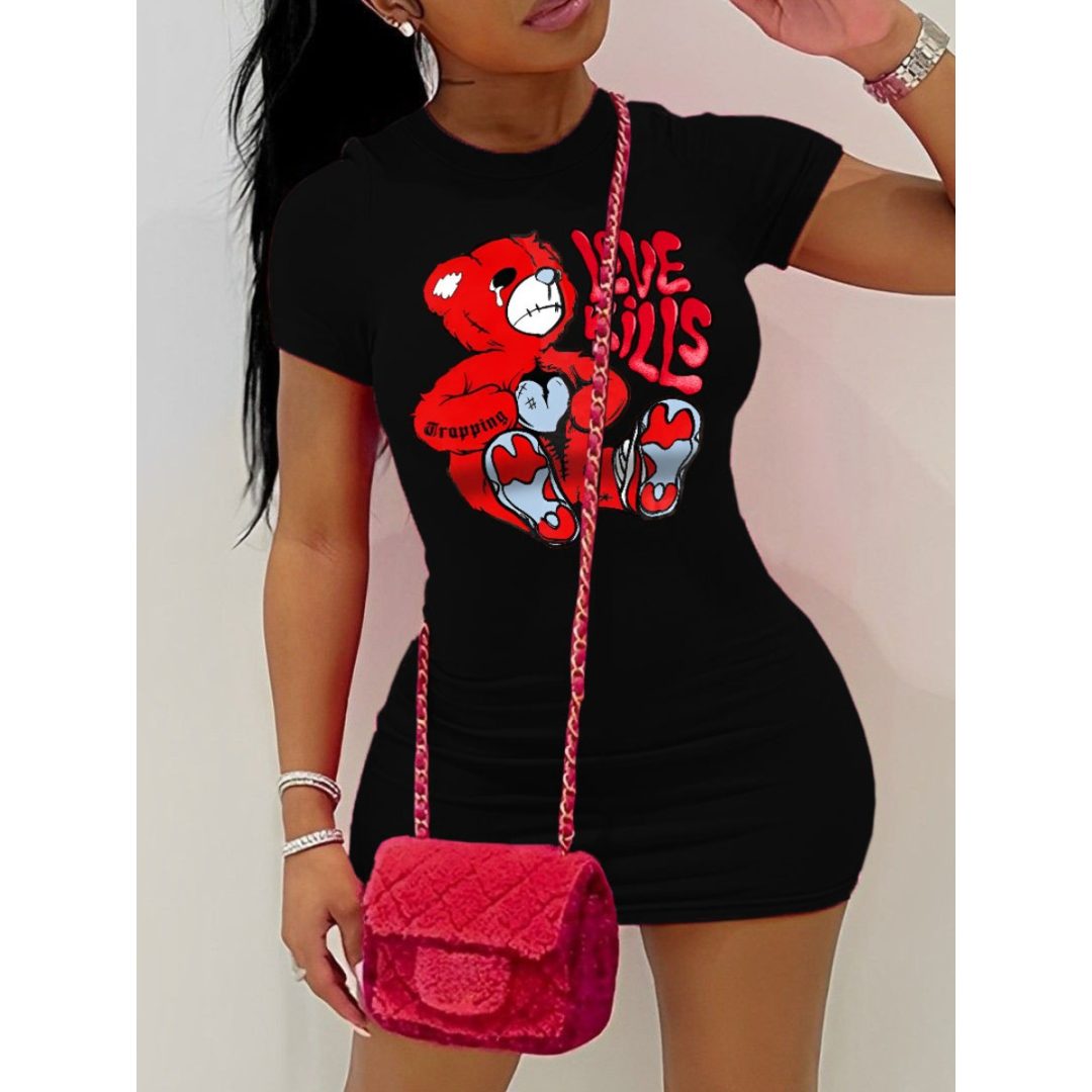 LW Plus Size Bear Cartoon Letter Print Bodycon Dress