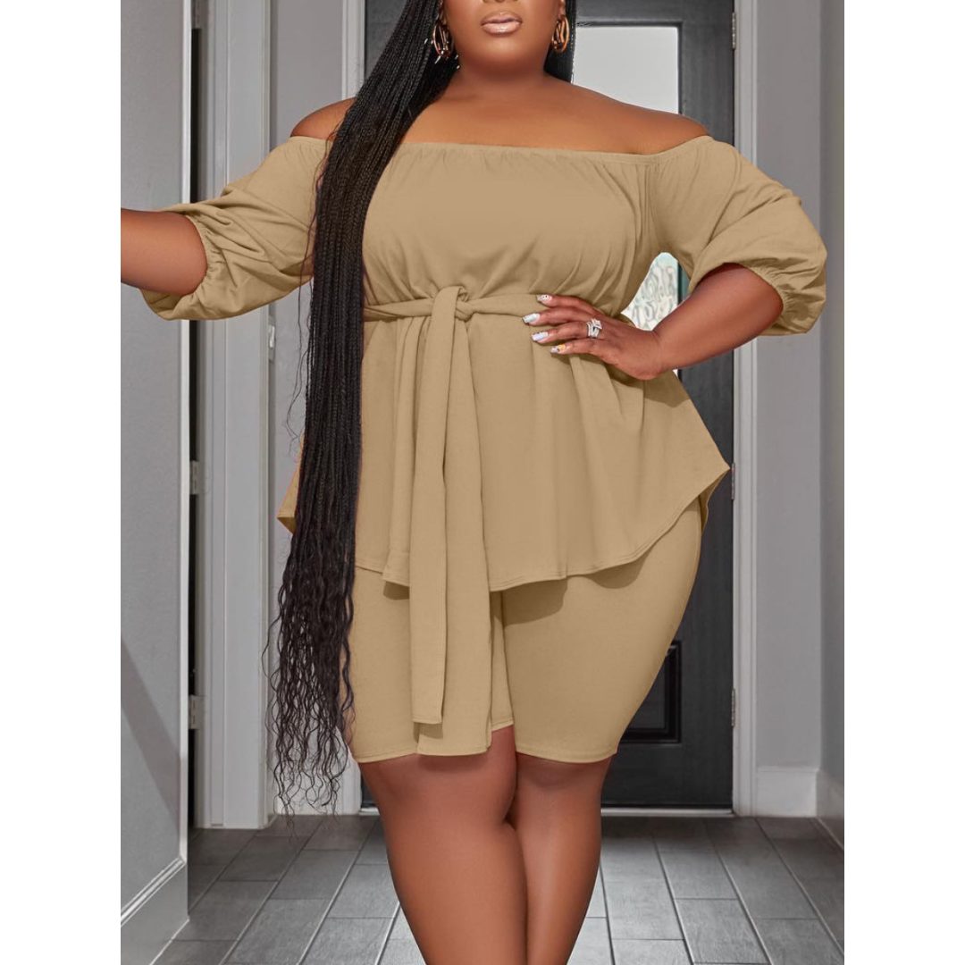 LW Plus Size Off The Shoulder Bandage Design Shorts Set