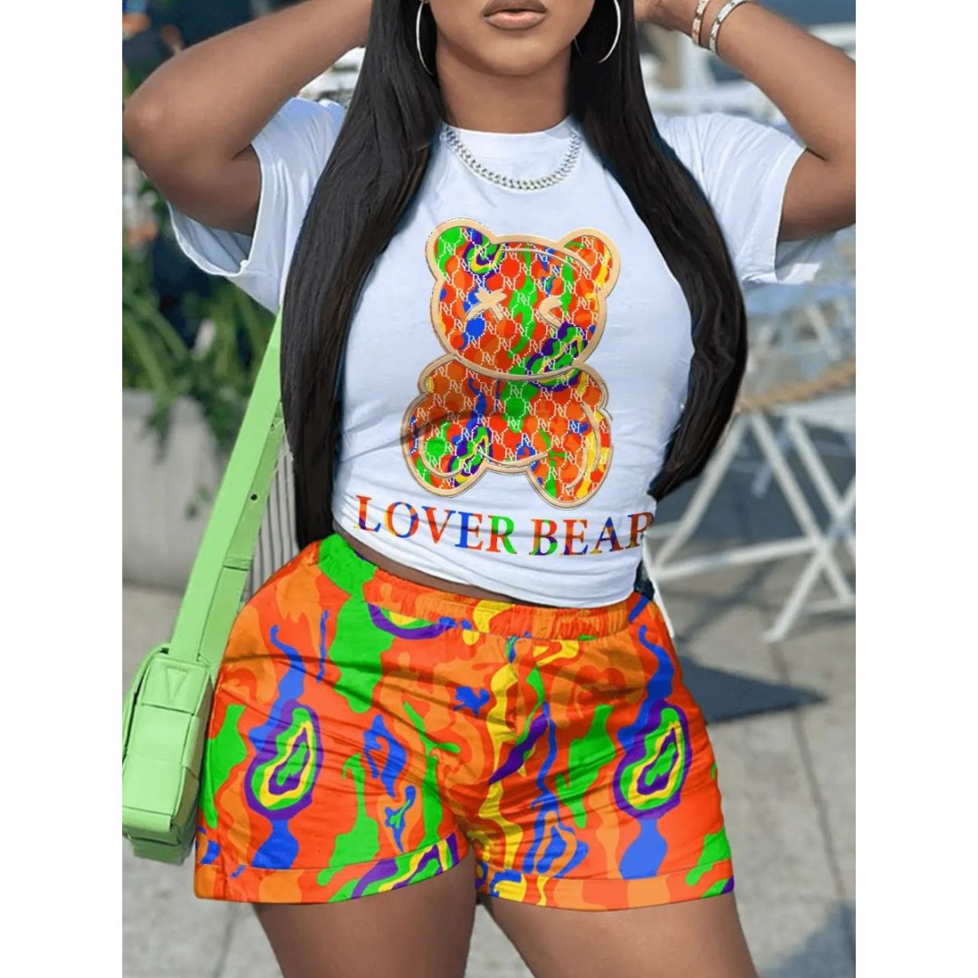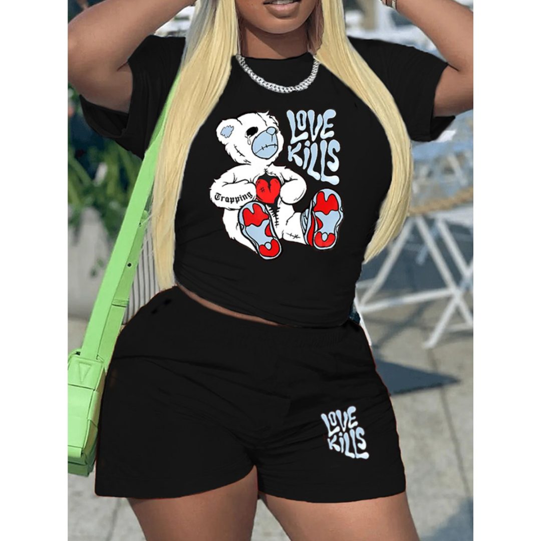 LW Lover Bear Letter Print Shorts Set