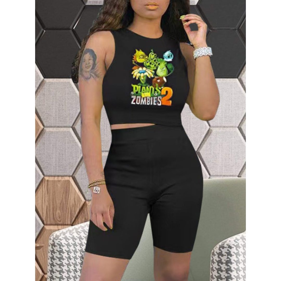 LW Plus Size Cartoon Letter Print Shorts Set