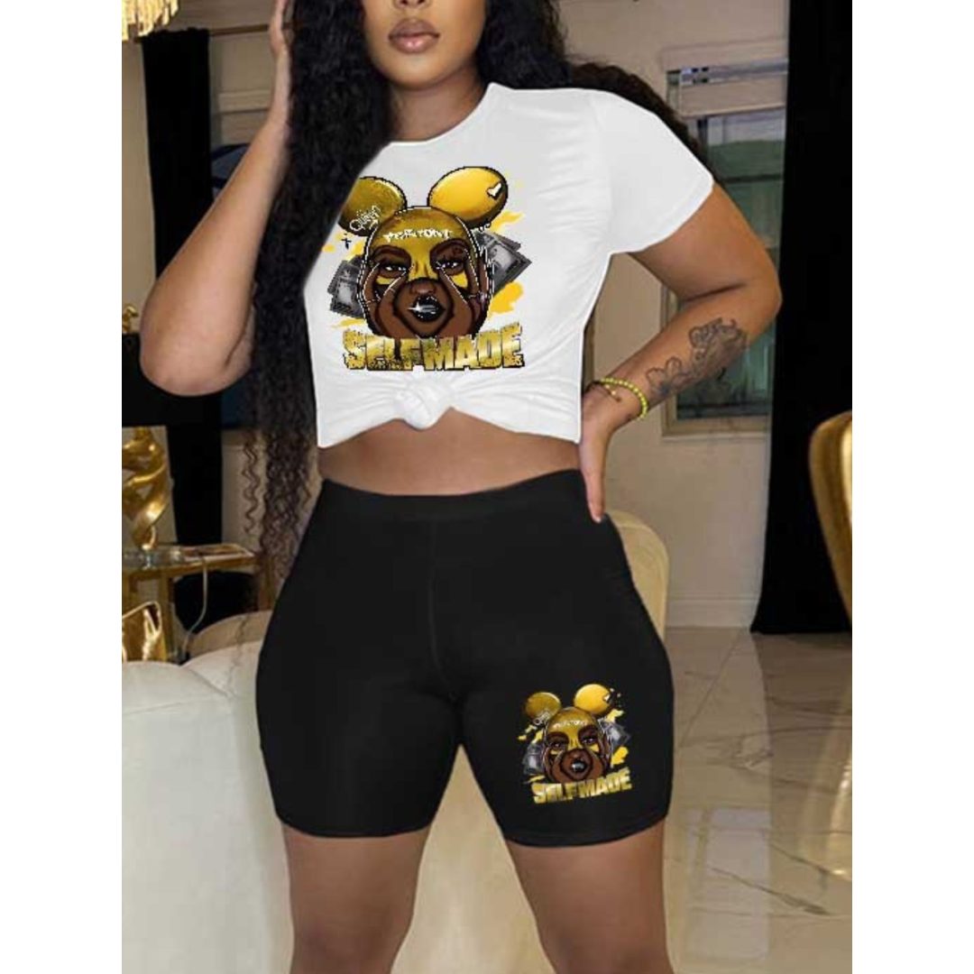 LW Plus Size Cartoon Letter Print Shorts Set