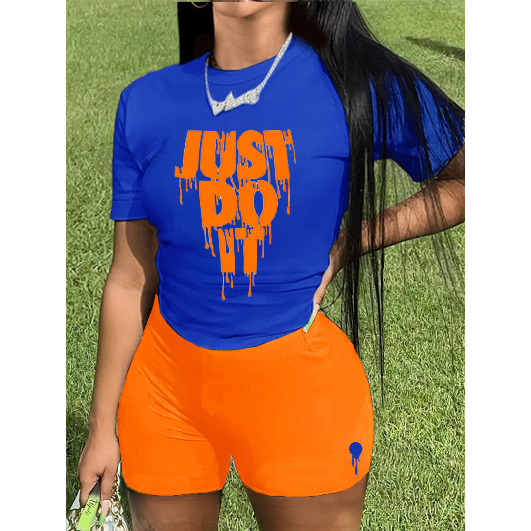 LW Asymmetrical Mixed Print Skinny Two-piece Shorts Set