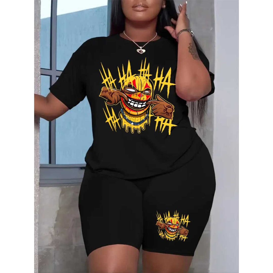 LW Plus Size Pattern Cartoon Print Skinny Shorts Set